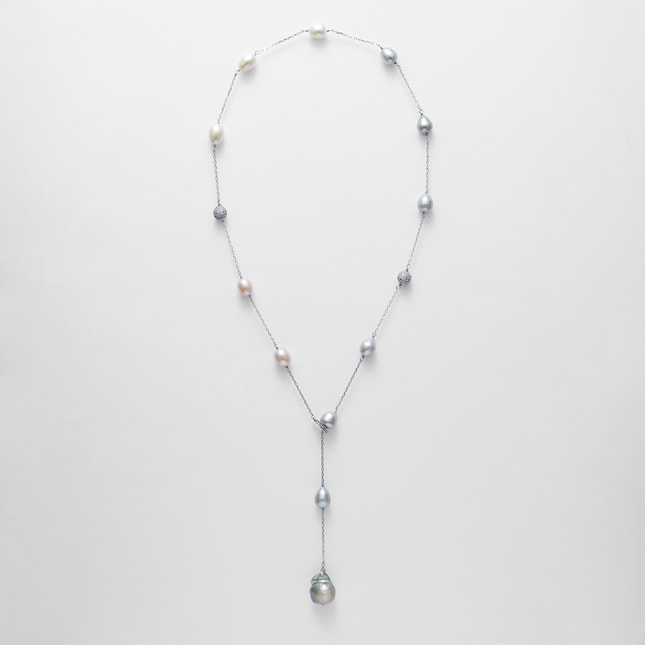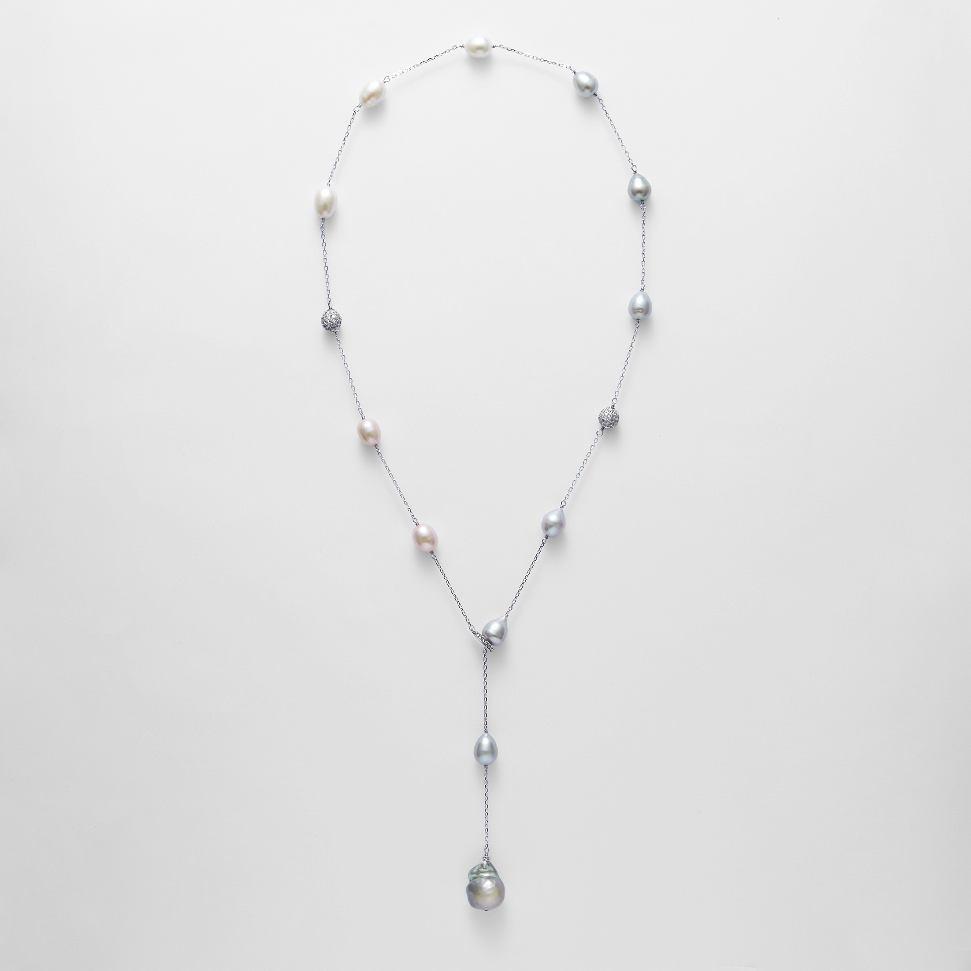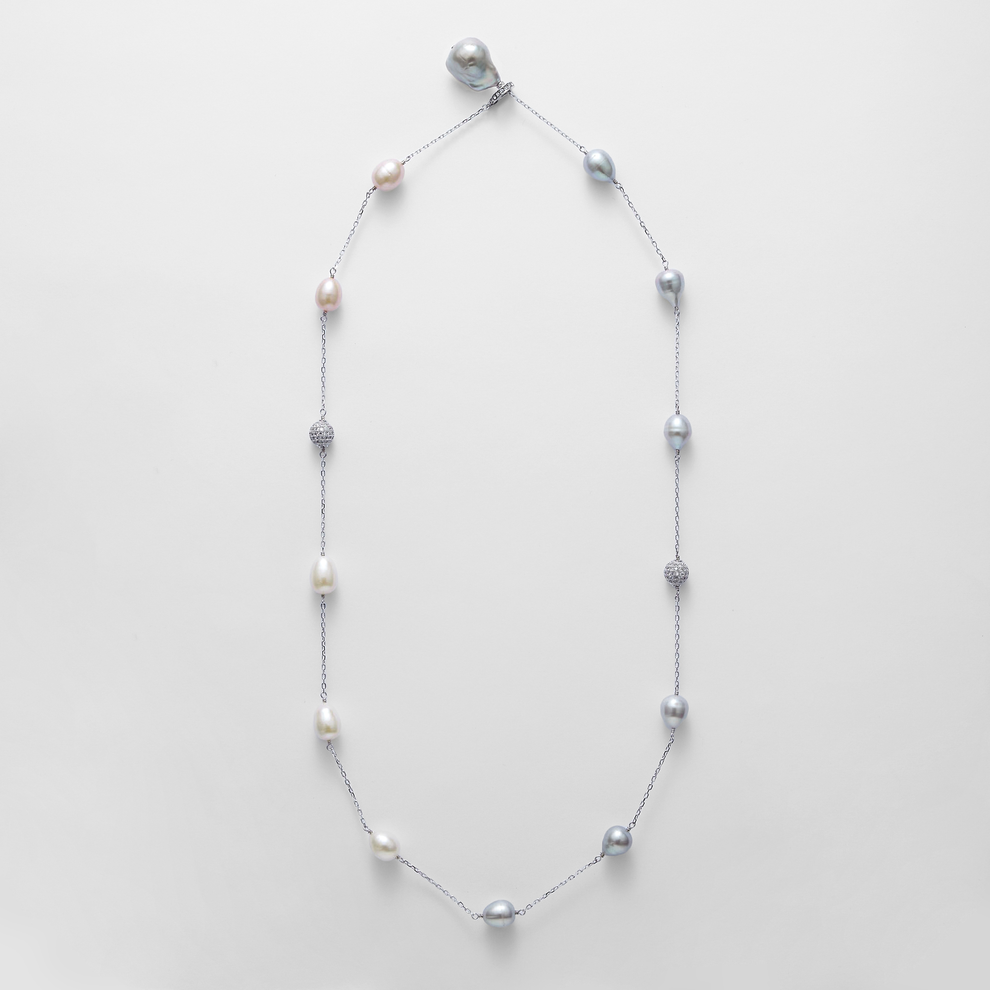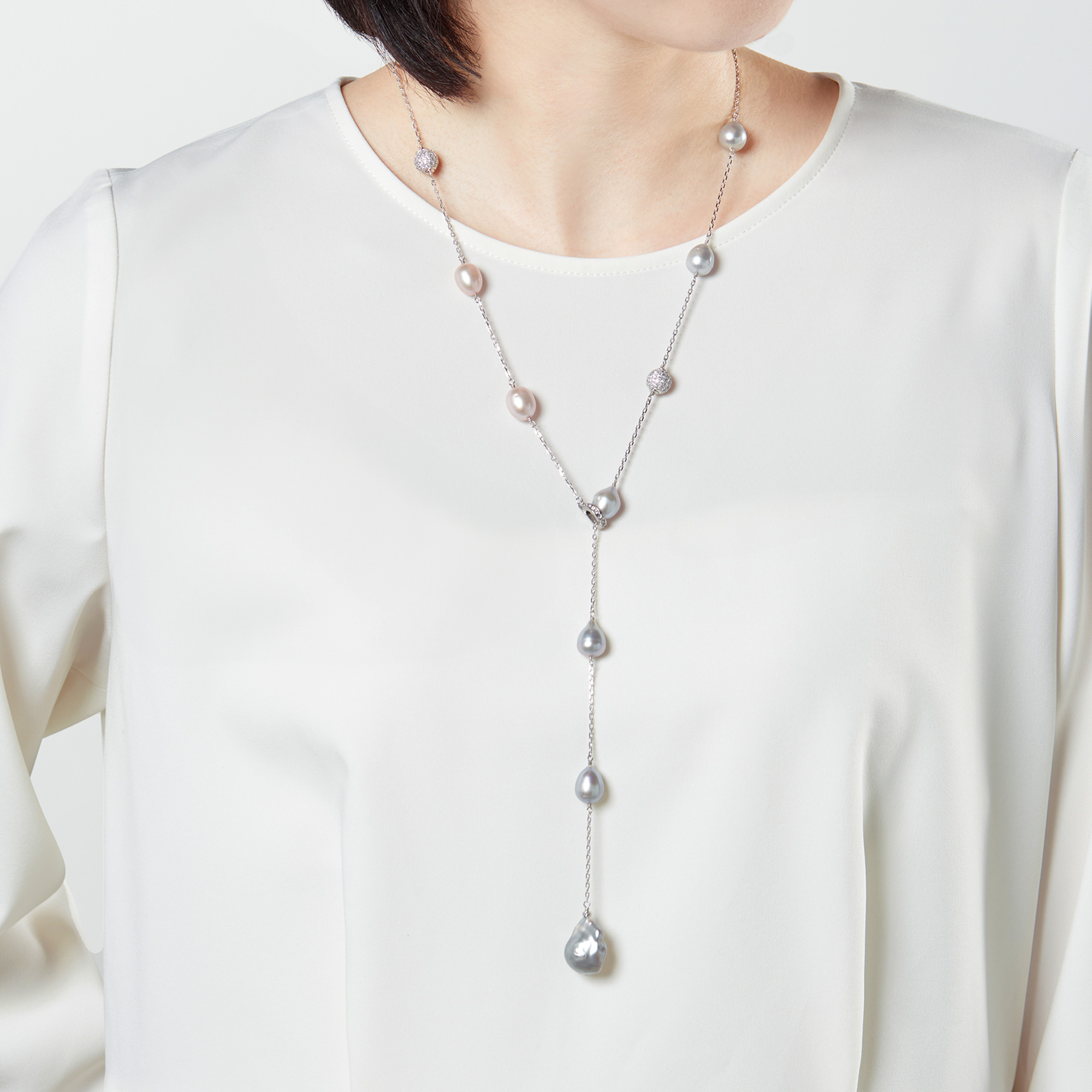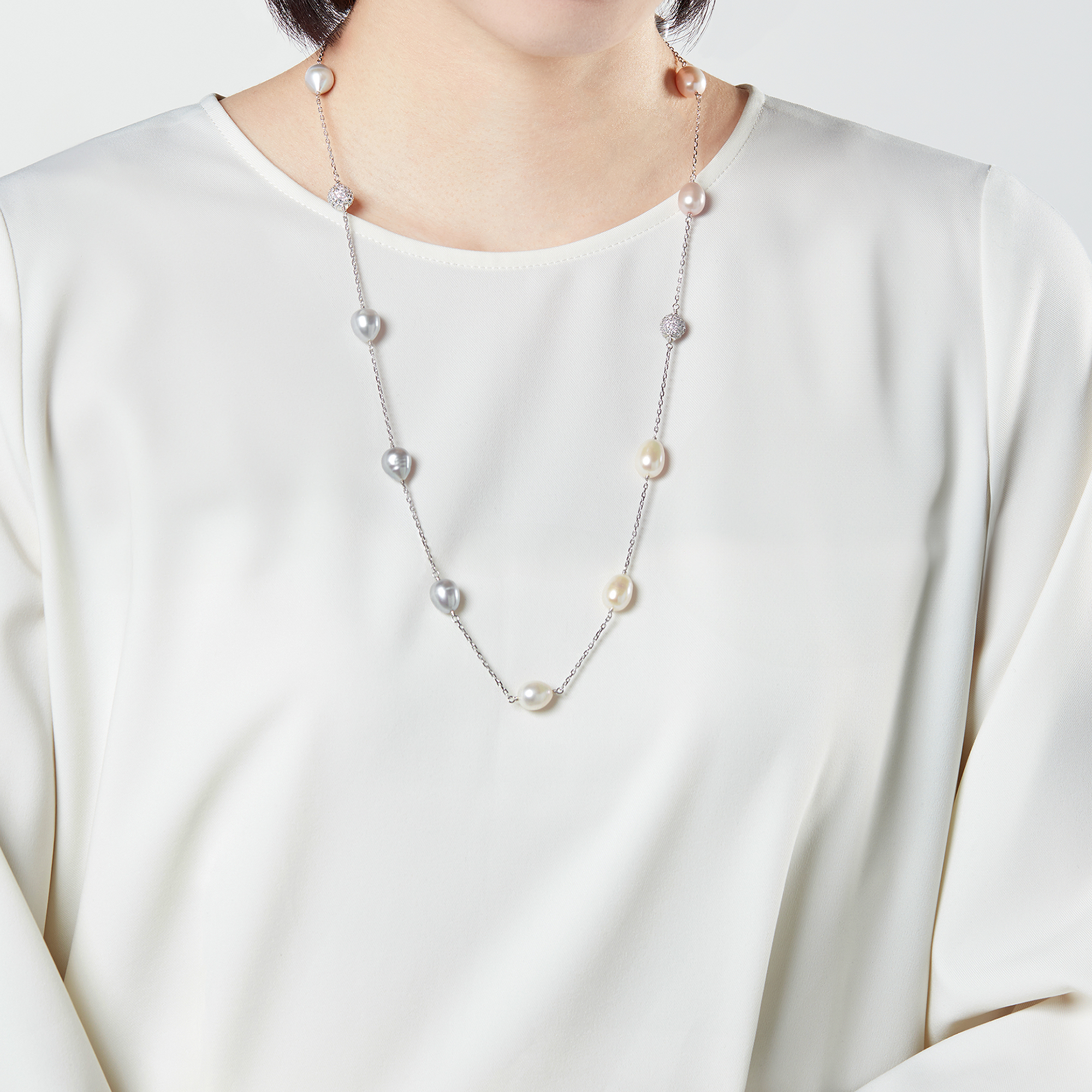 上質な淡水パールの自然なカラーが美しいステーションネックレス。