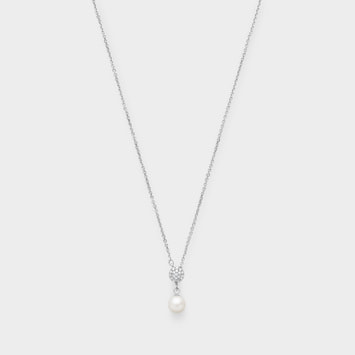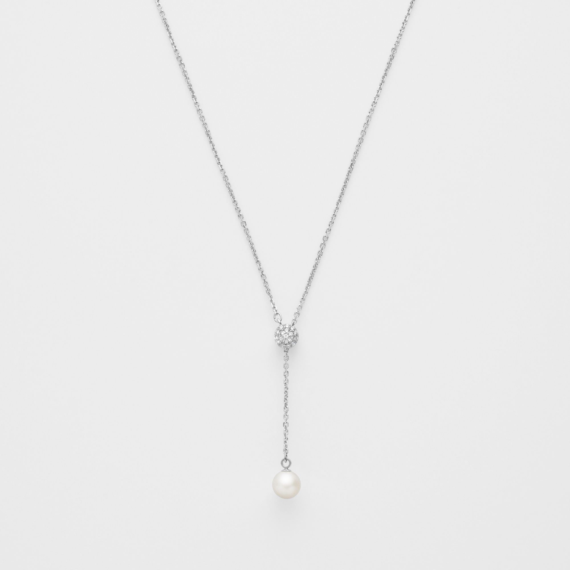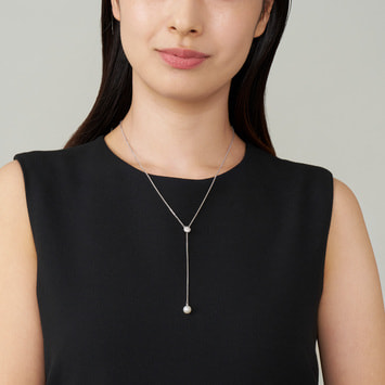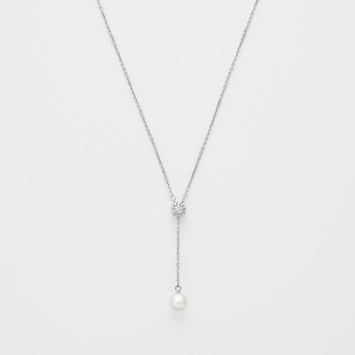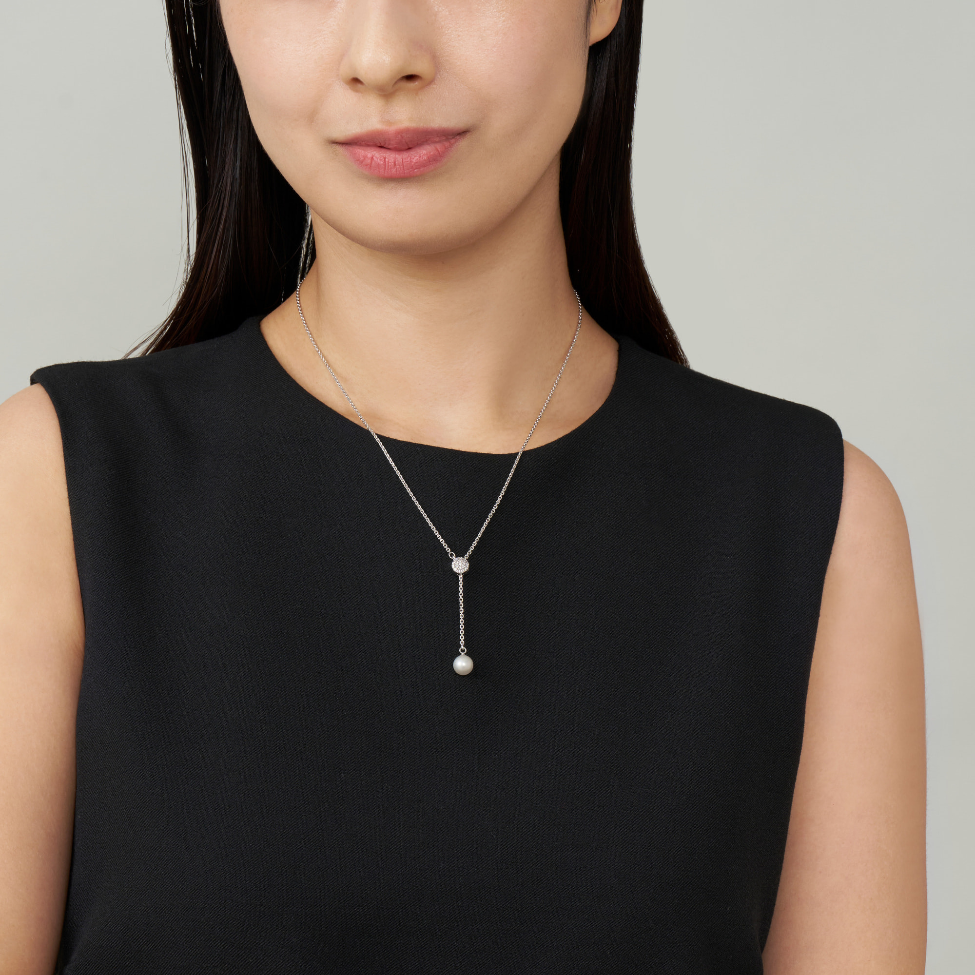 淡水パールとキュービックジルコニアの美しさが際立つ、スライドタイプのネックレス。