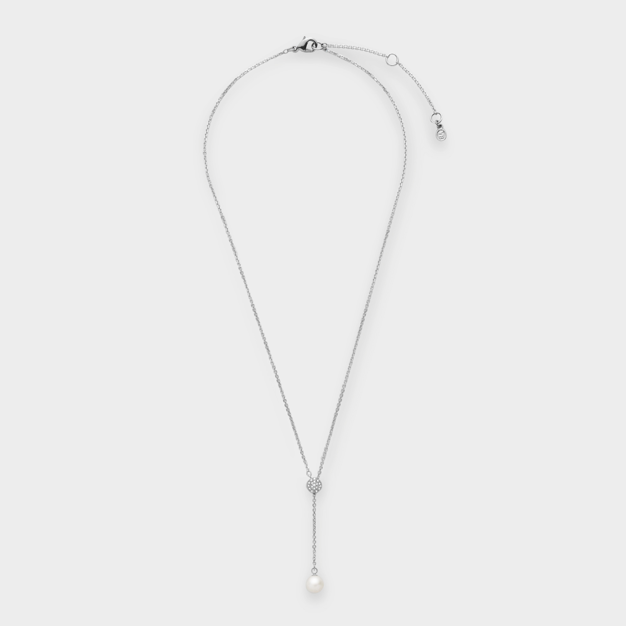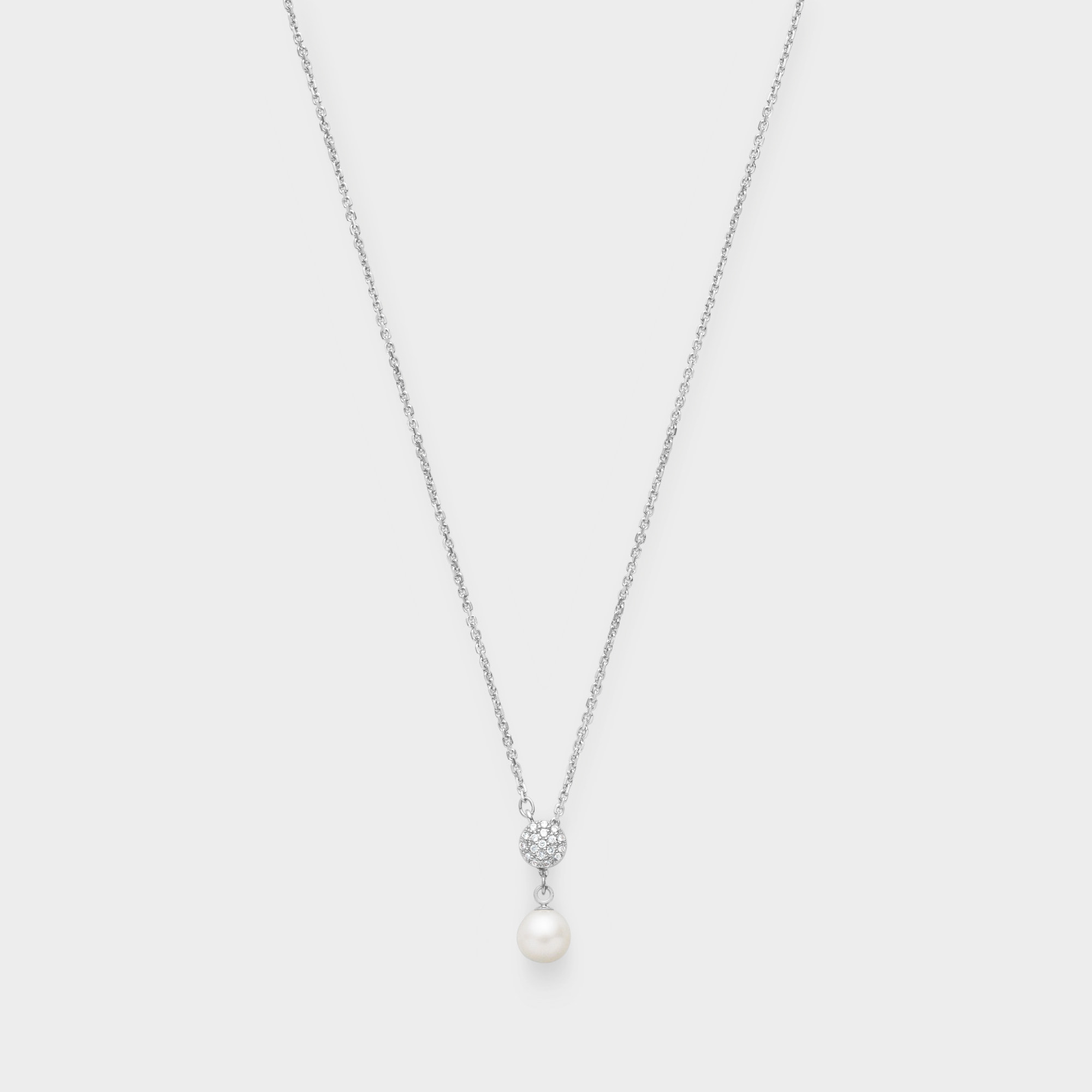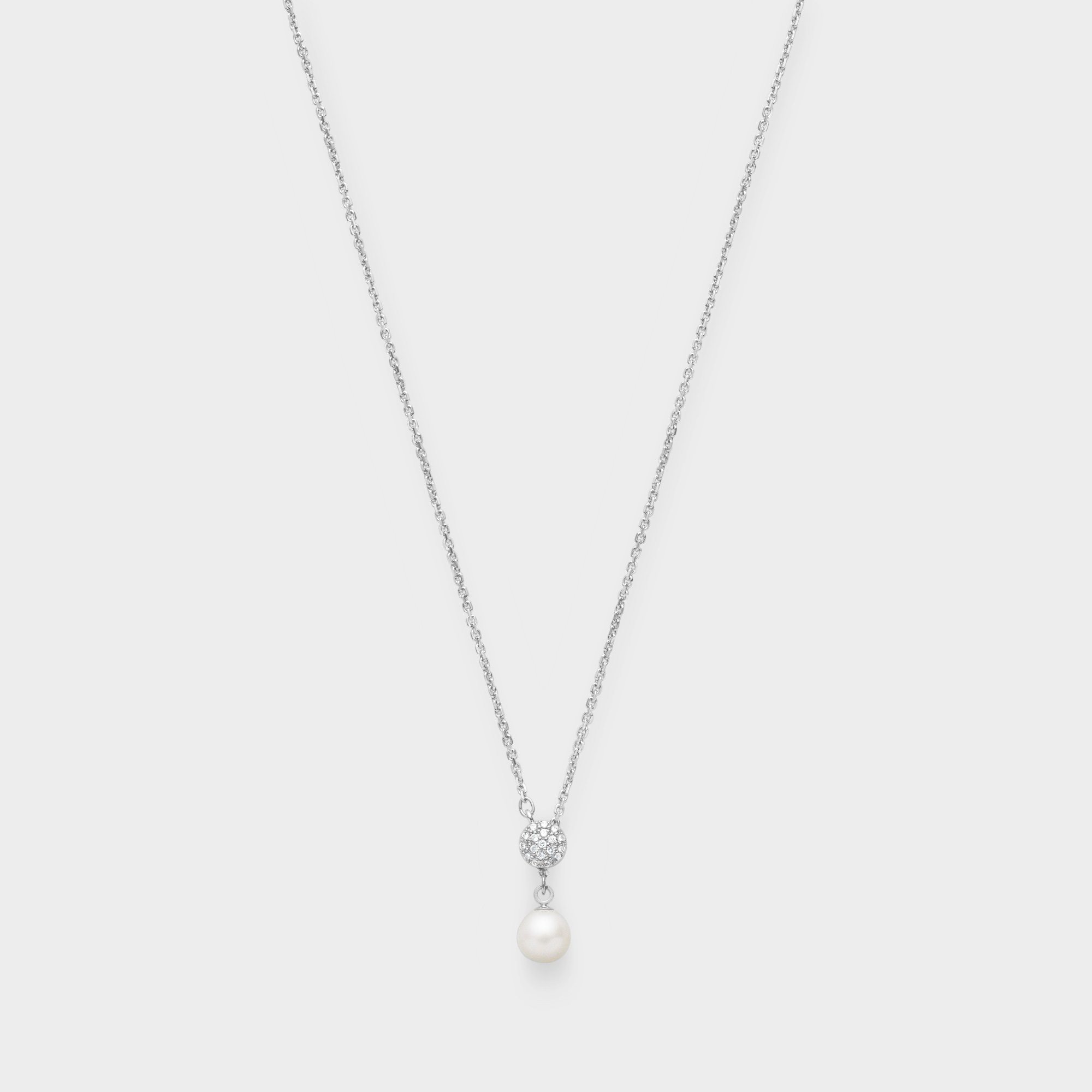 淡水パールとキュービックジルコニアの美しさが際立つ、スライドタイプのネックレス。