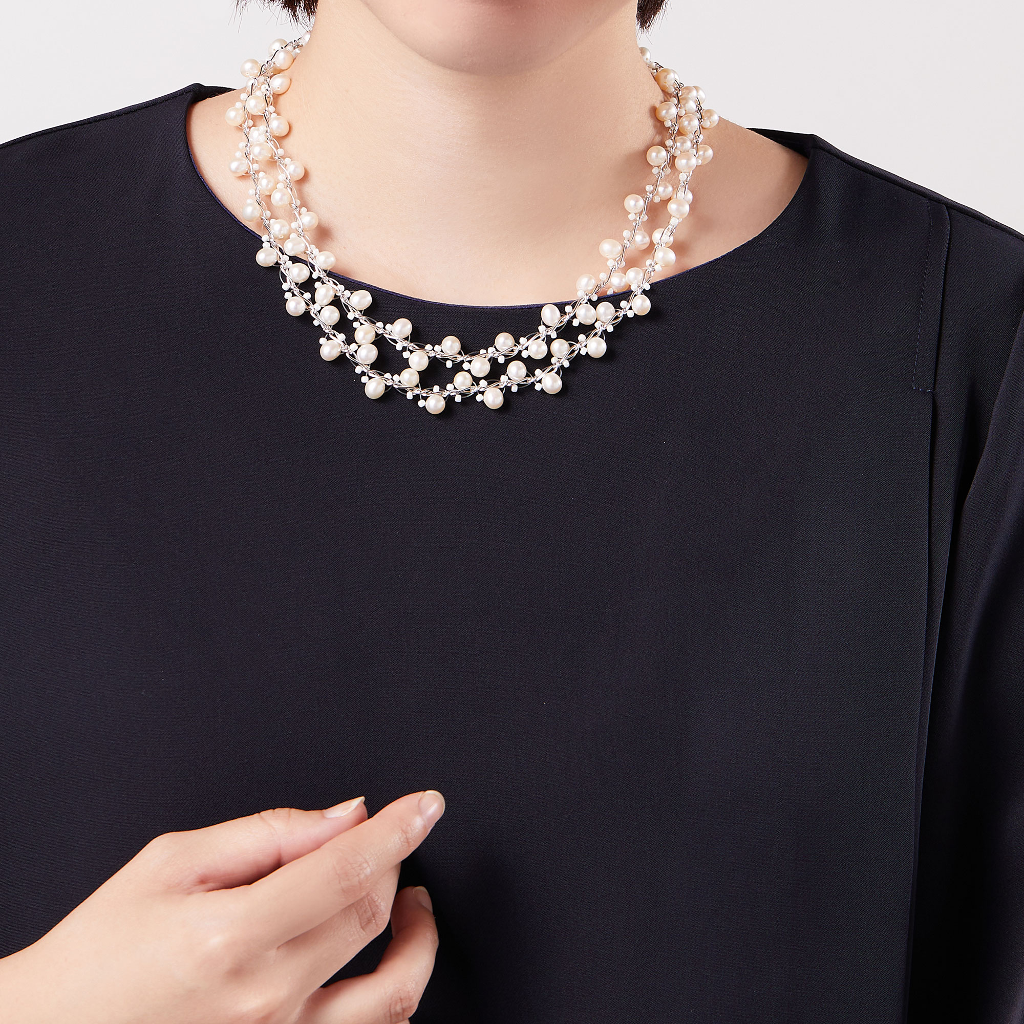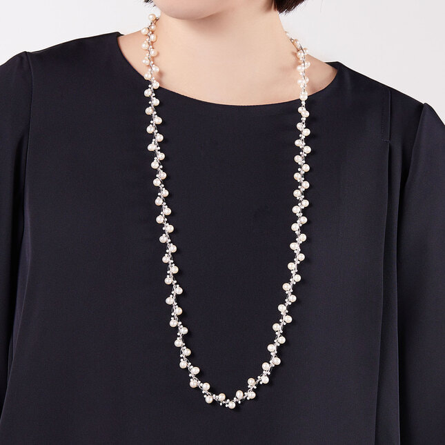 柔らかい光沢が美しい淡水パールが上品で、大人のエレガンスを演出してくれるネックレスです。