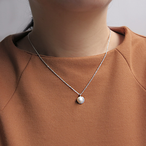 キュービックジルコニアの輝きと淡水パールの柔らかい光沢が美しいネックレス。 約8mmのコロンとした大粒の淡水パールは上品で高級感溢れ、モダンにもエレガントにもスタイルに合わせて使いまわしの出来る素敵なネックレスです。