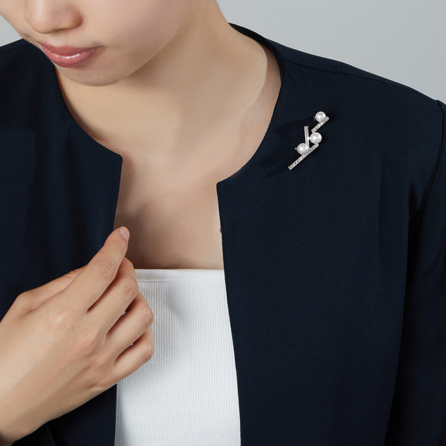 リズミカルに配置された淡水パールが大人の遊び心を感じさせるブローチ。