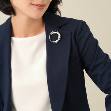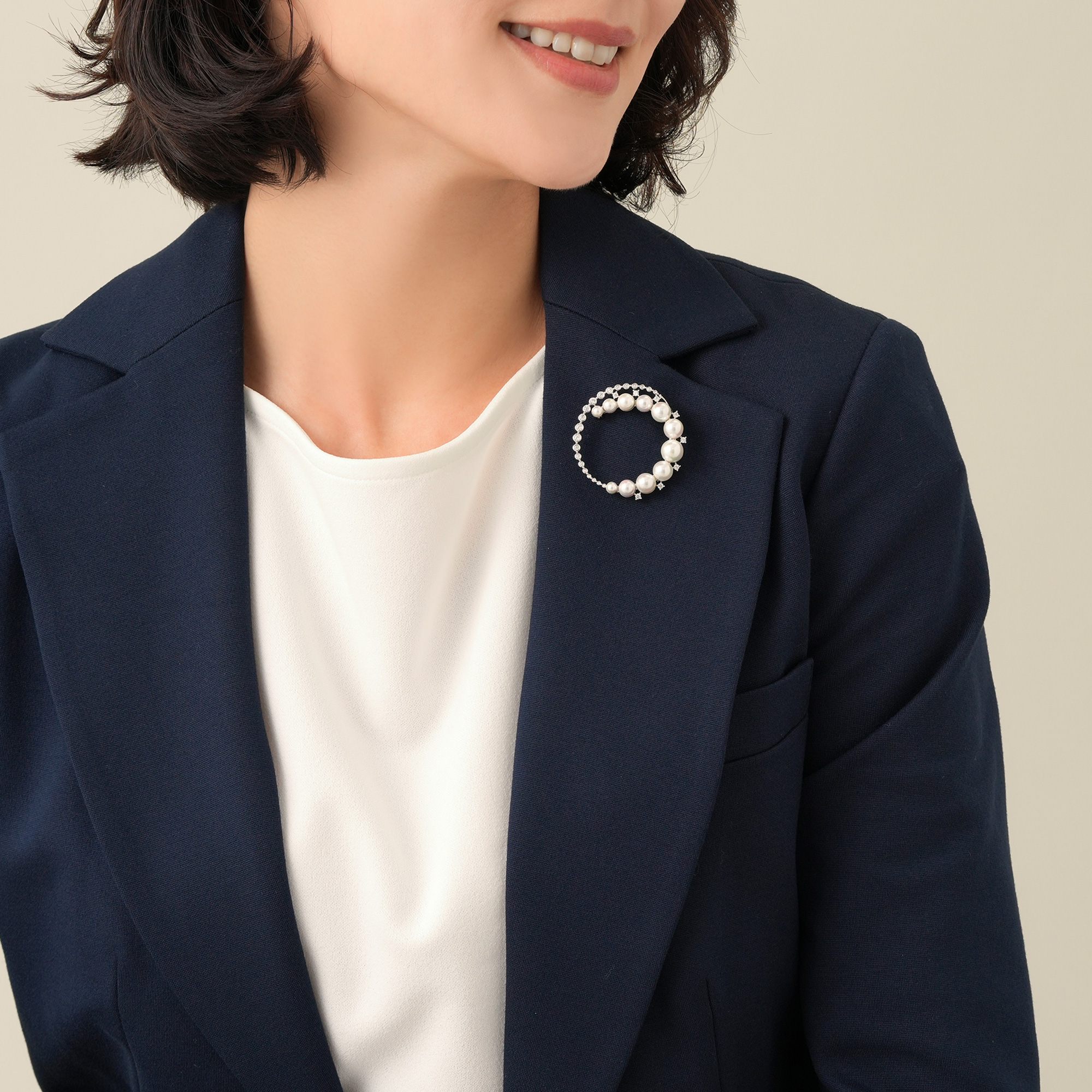 繊細なパールのグラデーションで象ったサークルモチーフがミニマルな印象のブローチ。