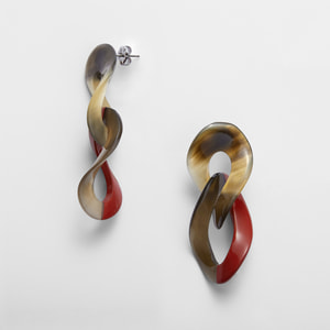 水牛にレッドカラーの塗装を施した美しいピアス。