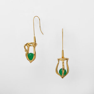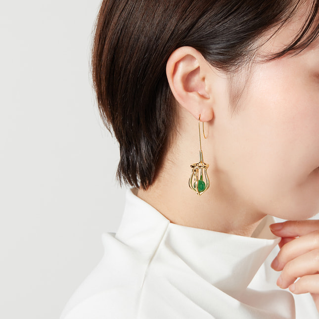 グリーンカルセドニーがピアスの中で揺れ動く、印象的なデザインは、さまざまなコーディネートをスタイリッシュに演出します。