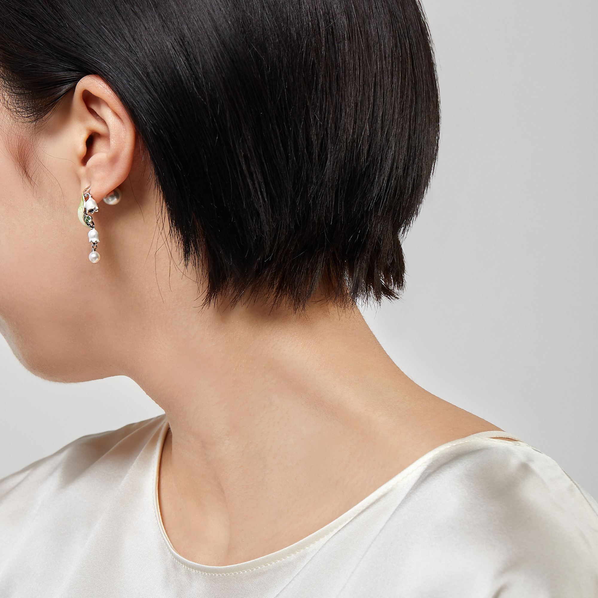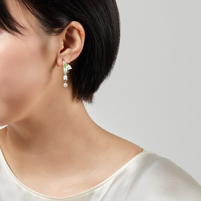 エレガントさとキュートさを兼ね備えた、すずらんのピアス。