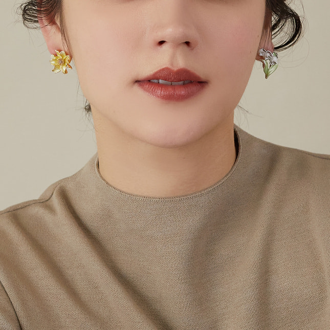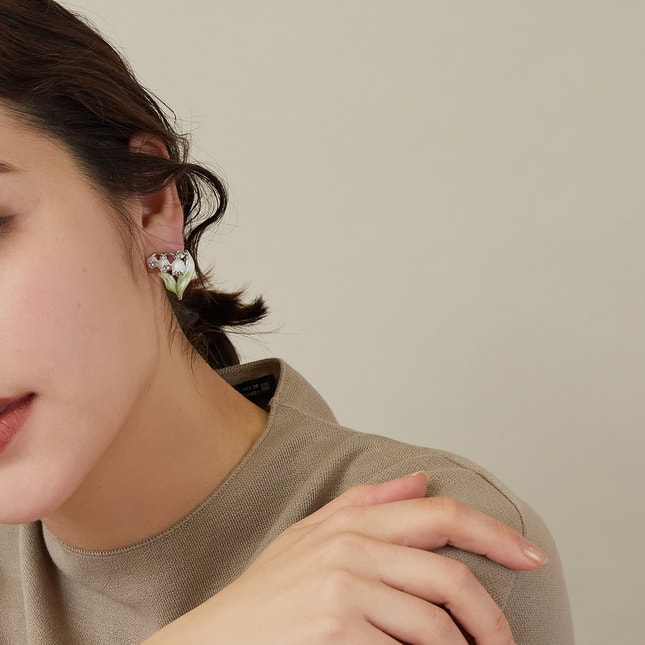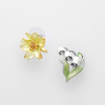 すずらんとマーガレットをモチーフにした可憐なピアス。