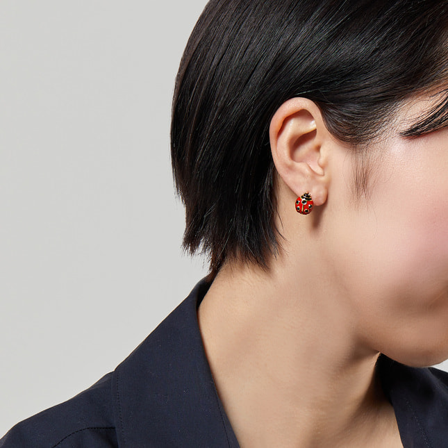 ぷっくりとした立体的なフォルムが可愛い、てんとう虫のピアス。