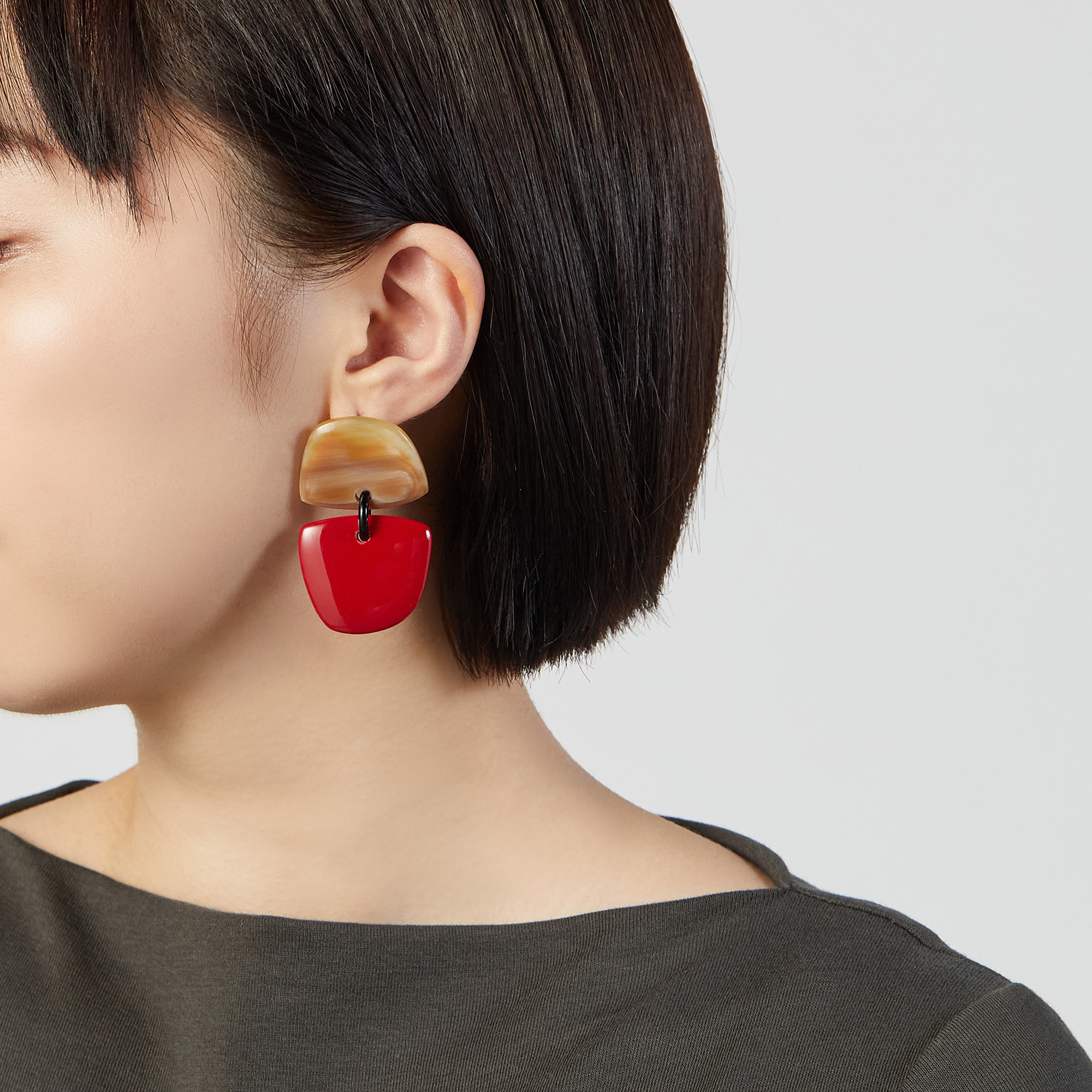 水牛に美しいルージュカラーの塗装を施したピアス。