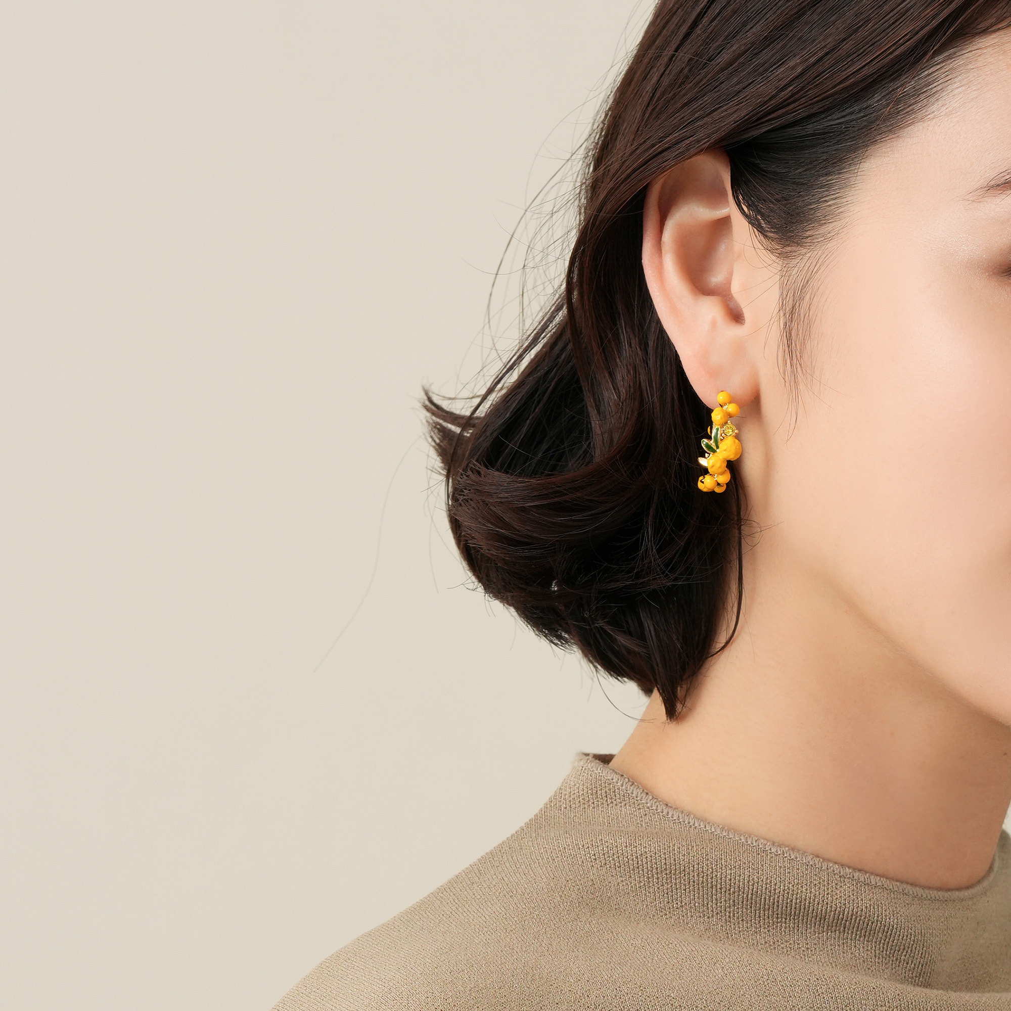 フレッシュなイエローカラーが春らしいミモザのピアス。
