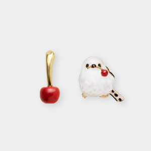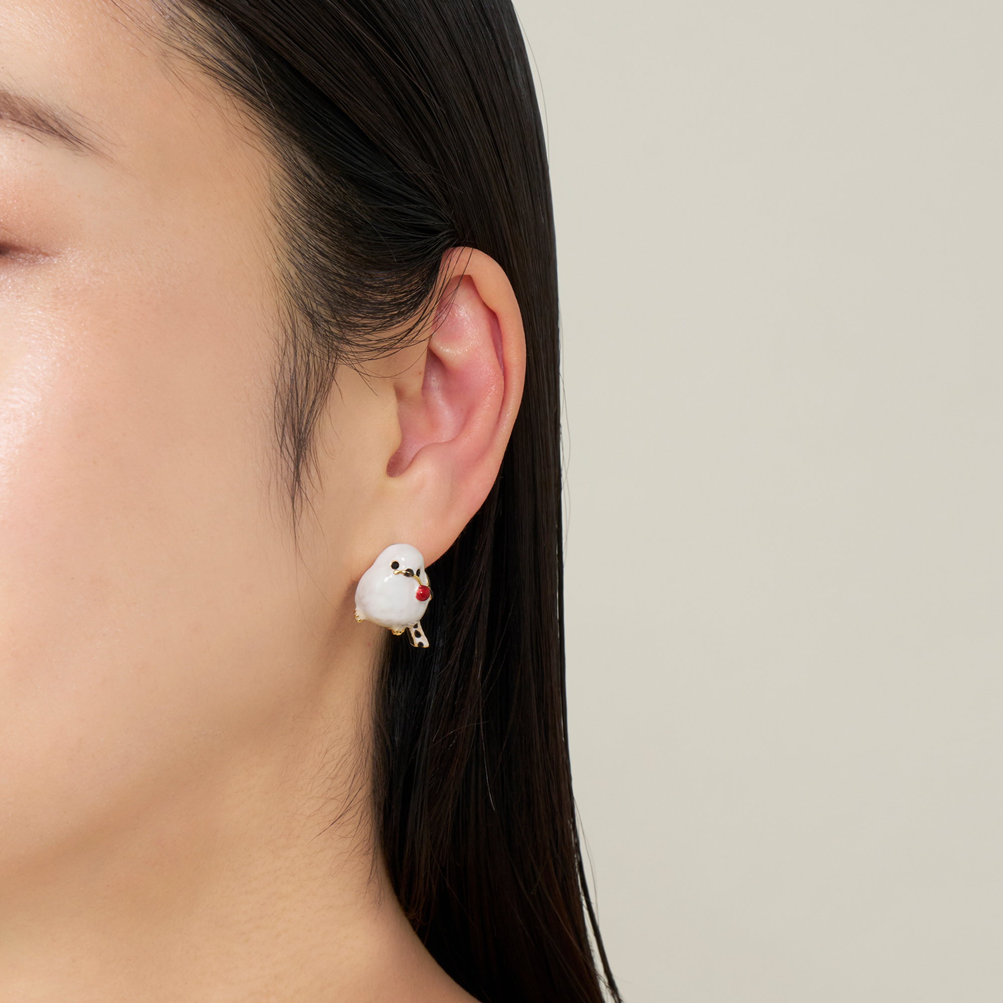 ふわふわの真っ白い羽毛にまん丸シルエットが愛らしいシマエナガのピアス。