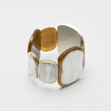 ナチュラルカラーの水牛と、ホワイトカラーを施したコントラストがお洒落なアイテム。