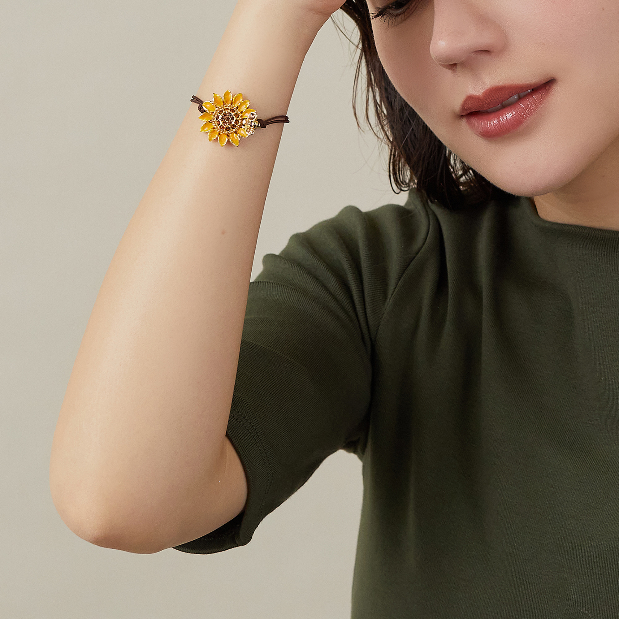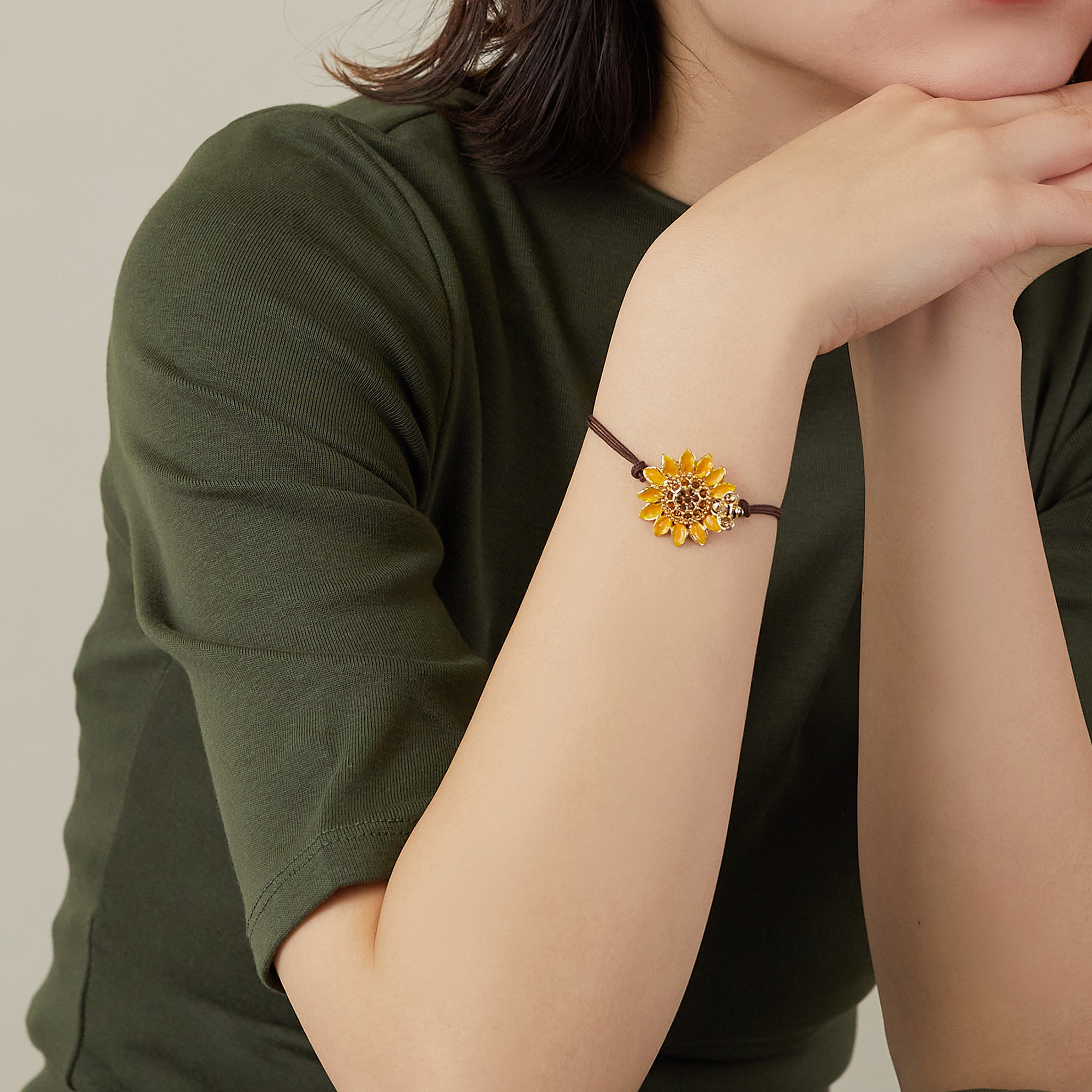心華やぐイエローカラーが印象的なひまわりのブレスレット。
