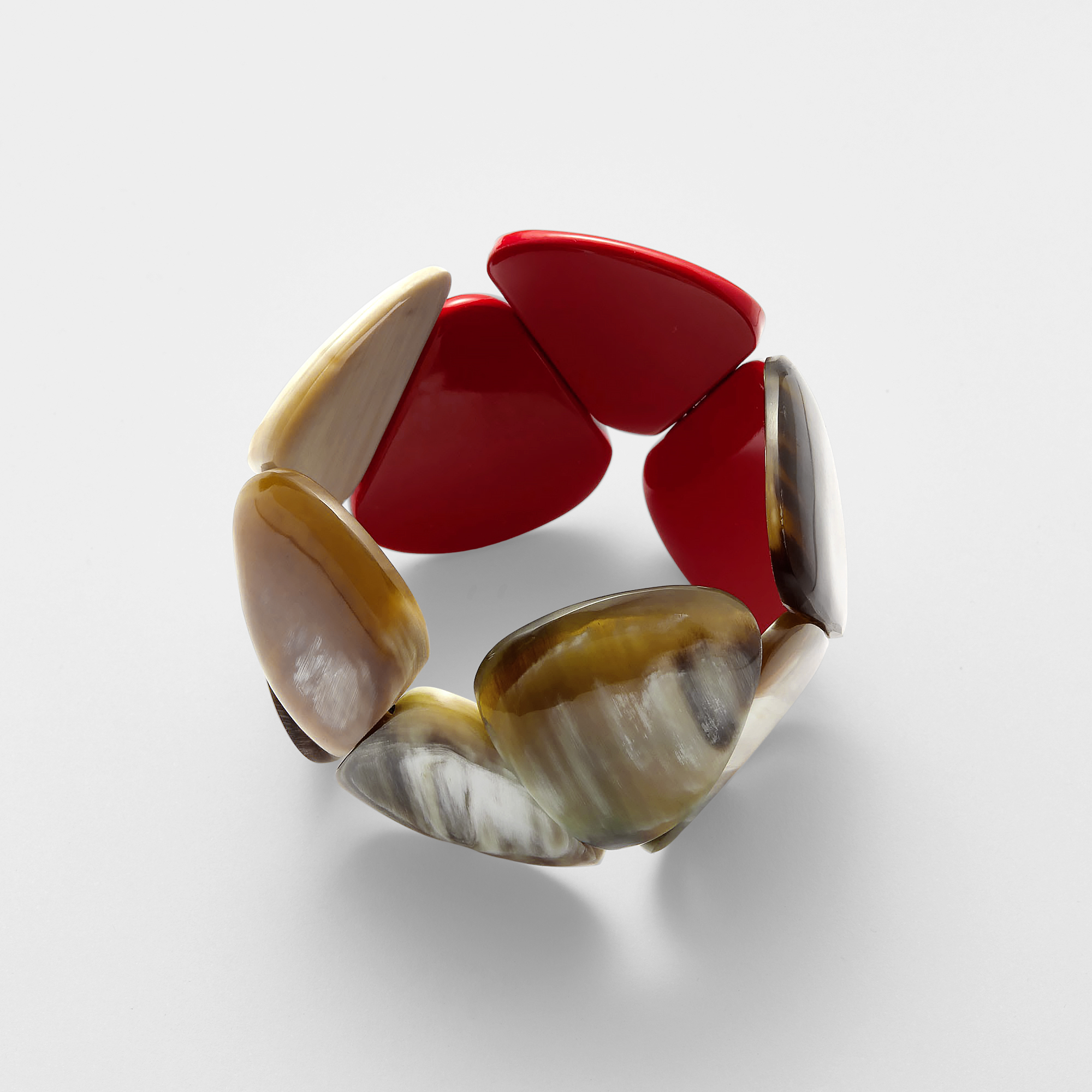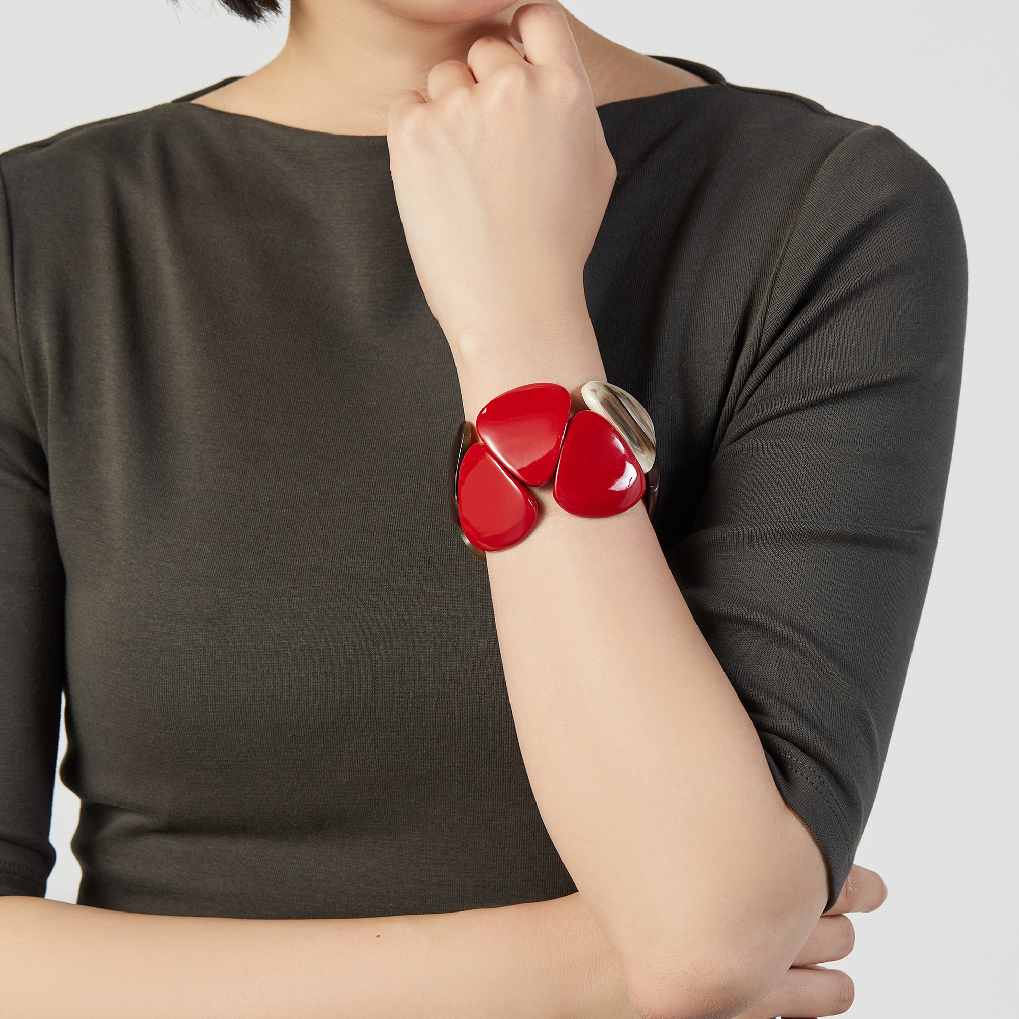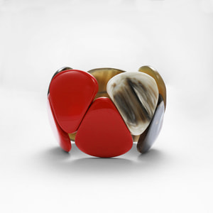水牛のナチュラルブラウンにルージュカラーのコントラストがモダンなスタイルを演出します。