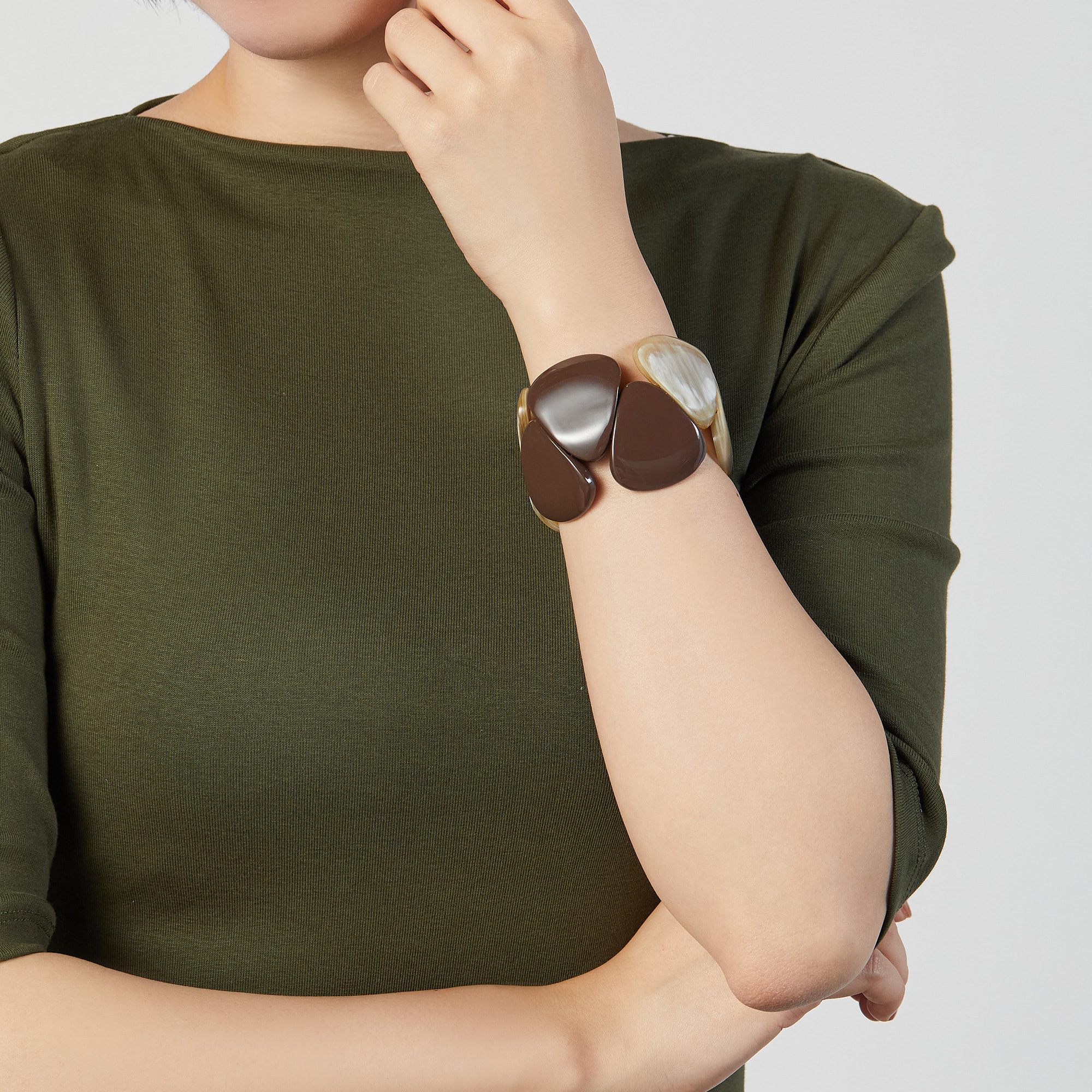 ショコラブラウンの塗装を施した水牛にナチュラルな水牛のコントラストがモダンなスタイルを演出します。