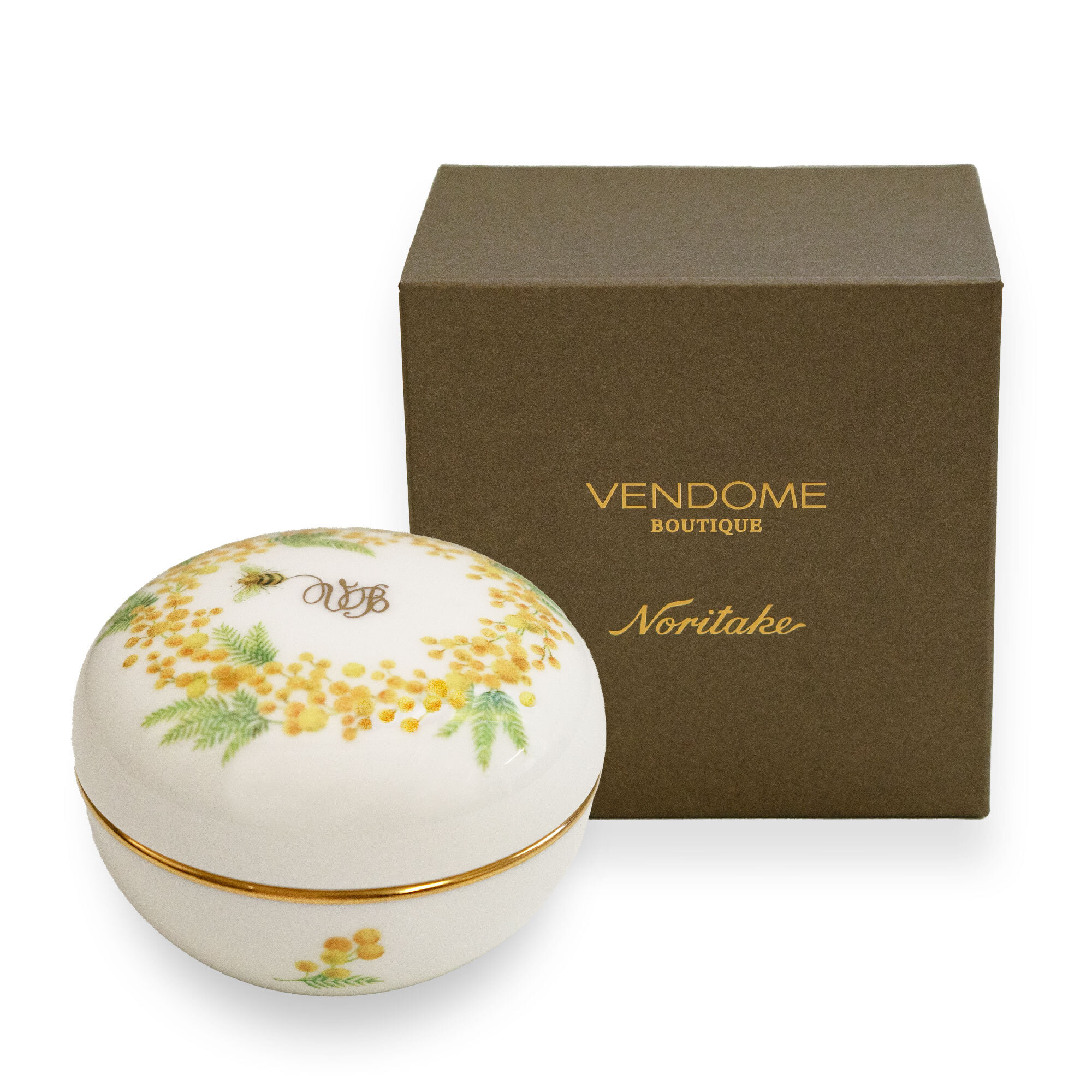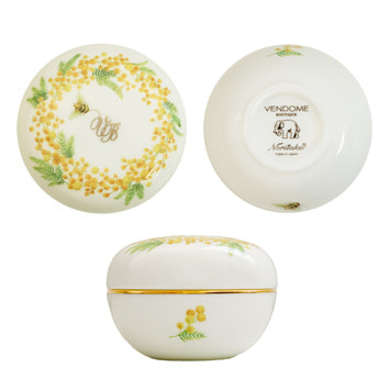 器に描いたのは、JAPANブランドらしい瑞々しい感性で四季を表現した、春を彩るミモザの花と愛らしいミツバチ。