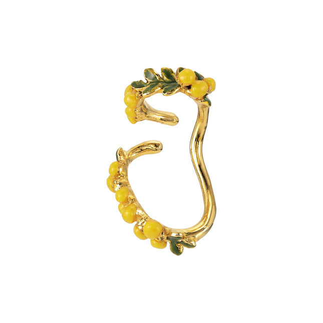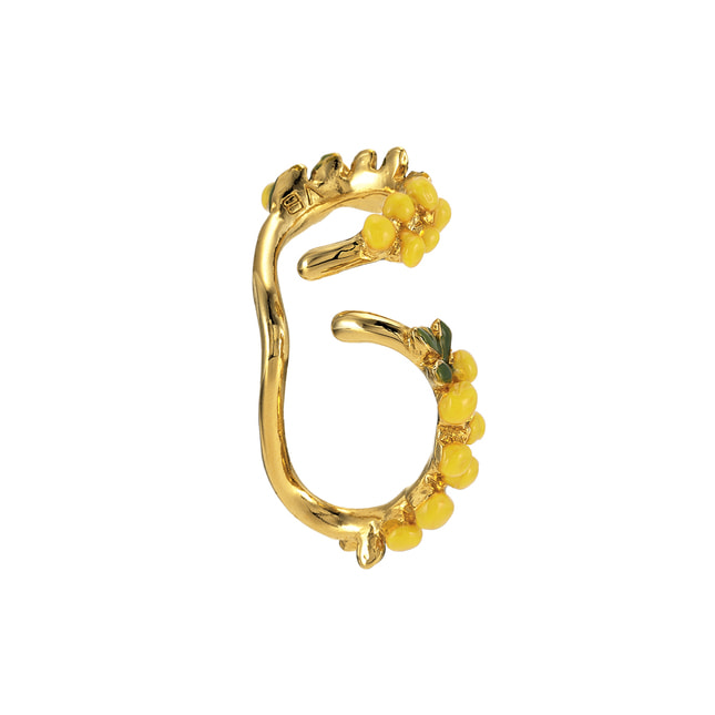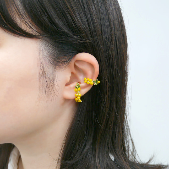 職人が一点一点、丁寧に色付けし仕上げた『ミモザ』のイヤーカフ。花言葉は「感謝」「優雅」「思いやり」春の訪れを告げるイエローカラーのイヤーカフ。着け心地の良い優しいフィット感で耳元を可憐に演出します。優雅さと可愛らしさを兼ね備えたミモザのイヤーカフを、スタイリングにプラスしてお楽しみいただけます。