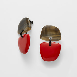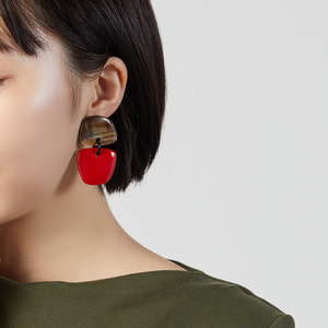 水牛に美しいルージュカラーの塗装を施したイヤリング。