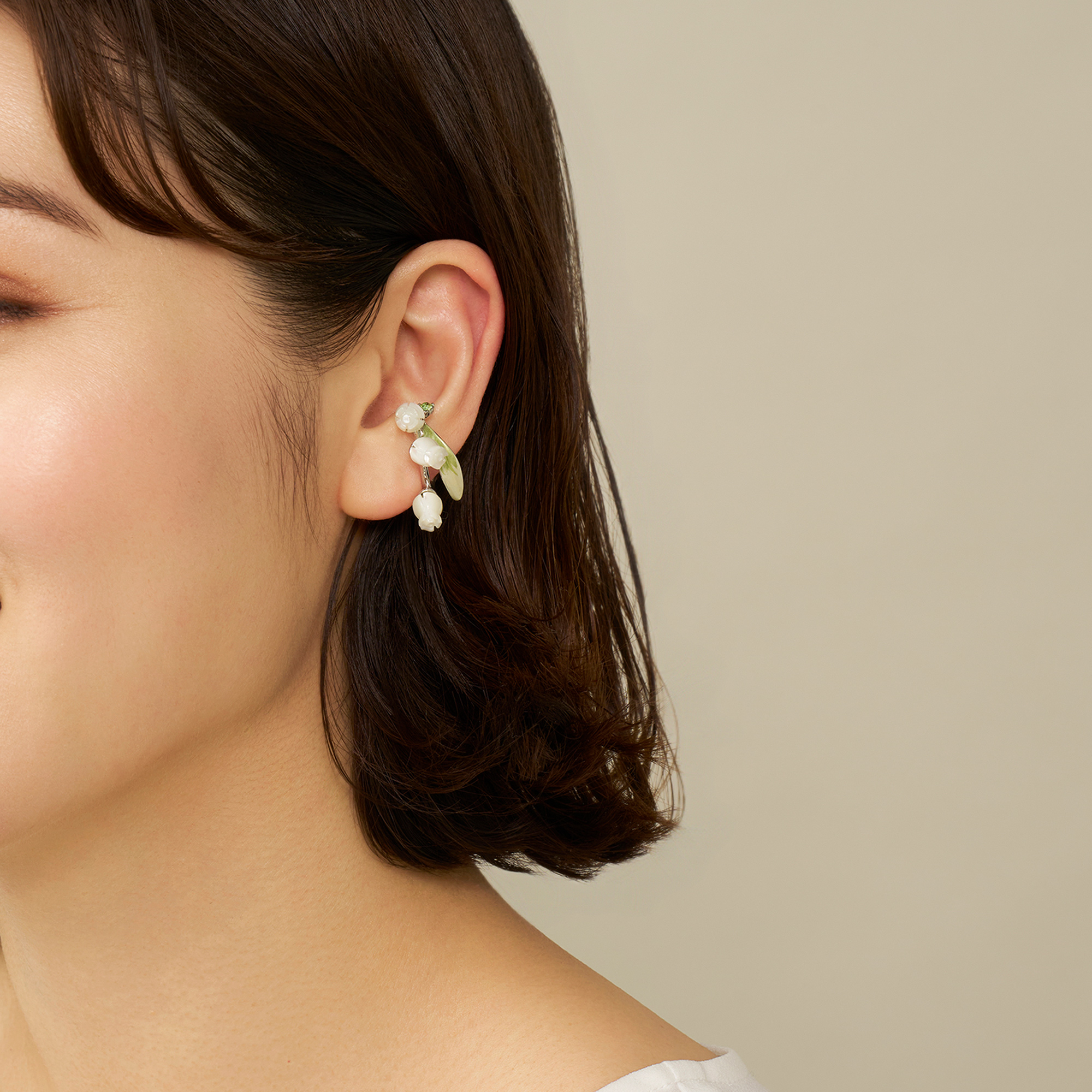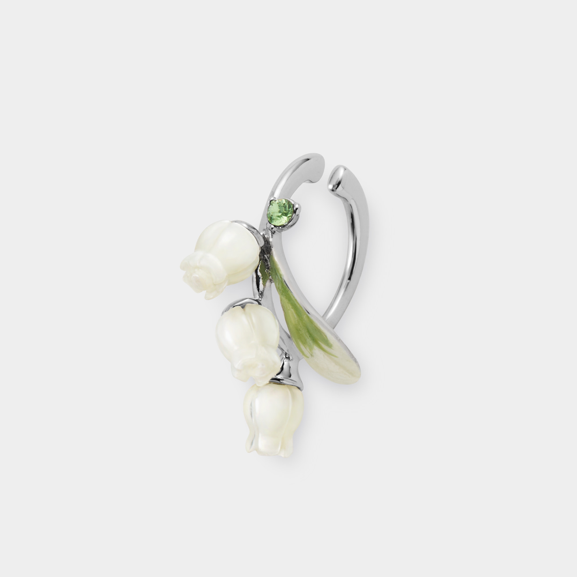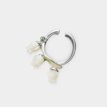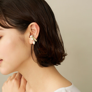 流れるような葉と白い花が耳元に咲く すずらんのイヤーカフ。