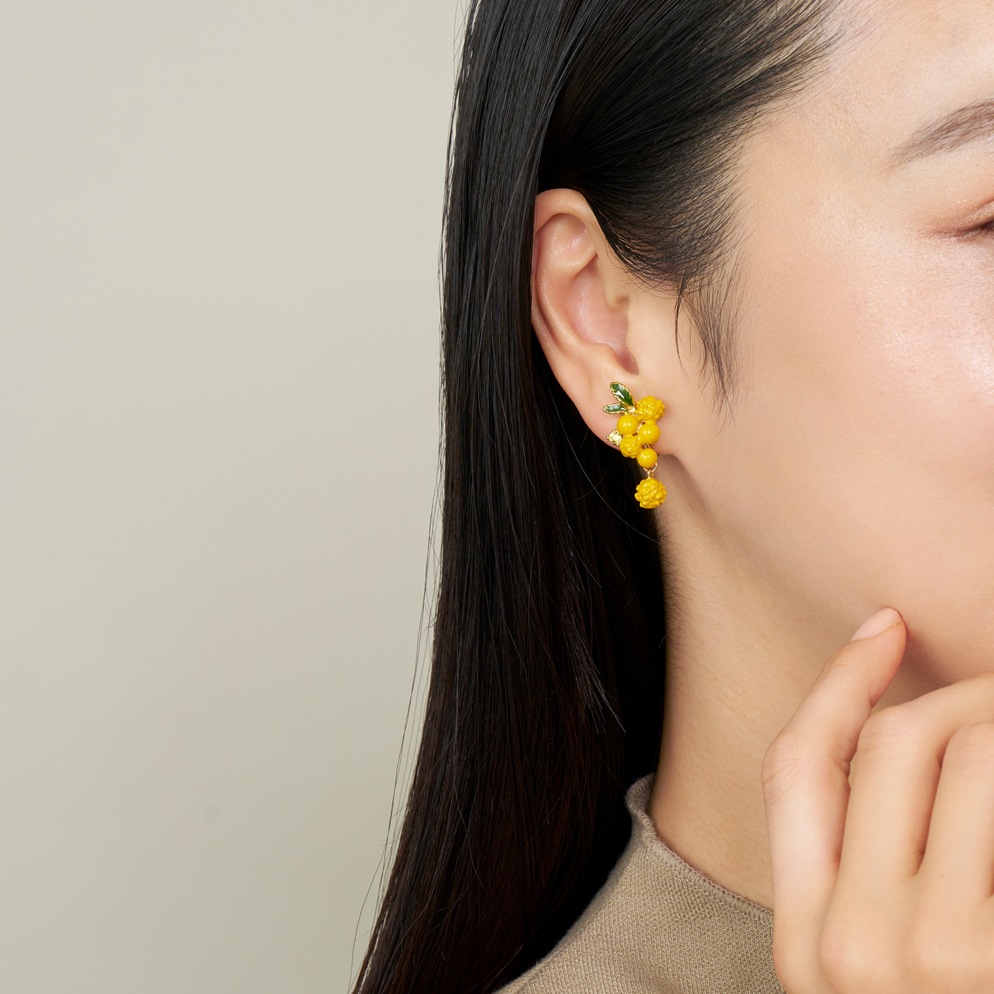 春の香りを感じる瑞々しいカラーが印象的なミモザのイヤリング。