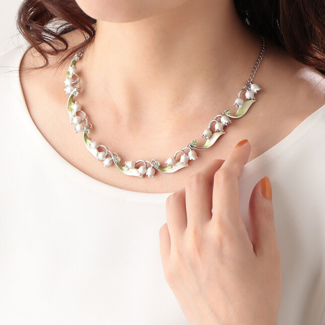 エレガントさとキュートさを兼ね備えたすずらんモチーフが魅力のネックレス。