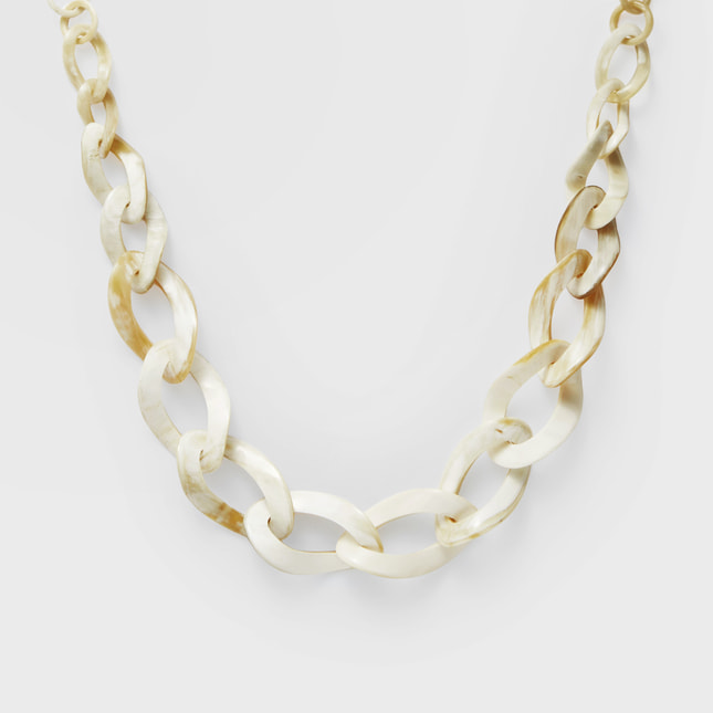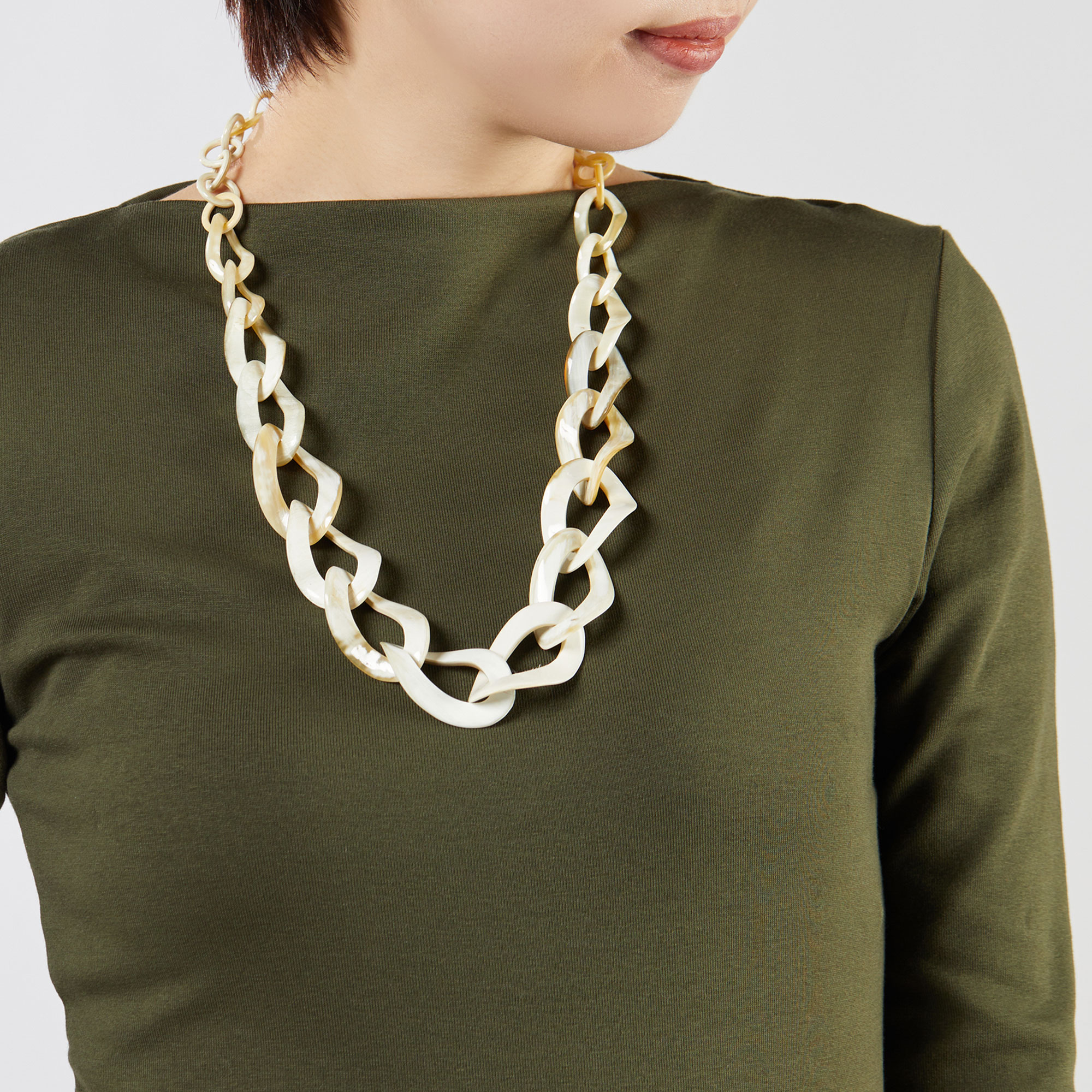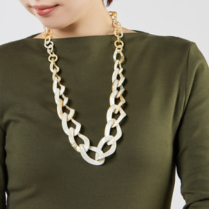 ナチュラルなホワイトカラーの水牛の、自然な質感と色合いが魅力的なネックレス。