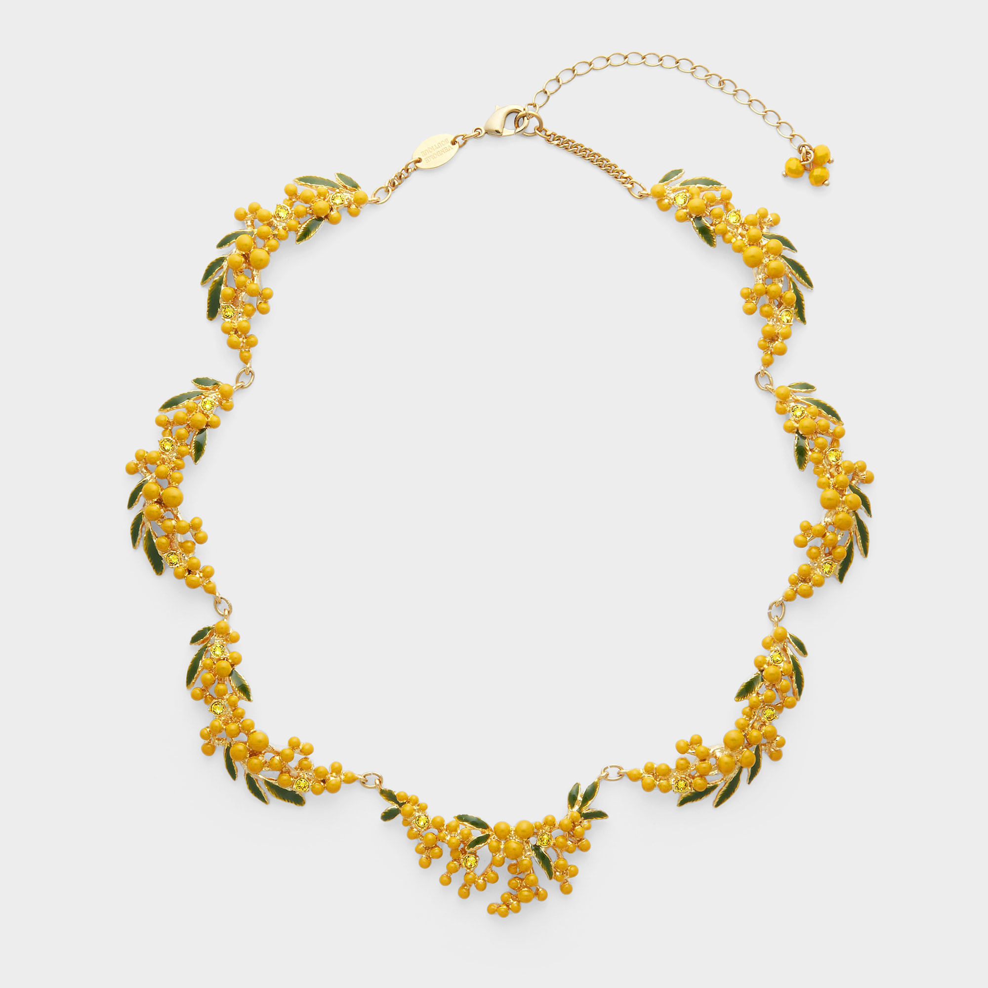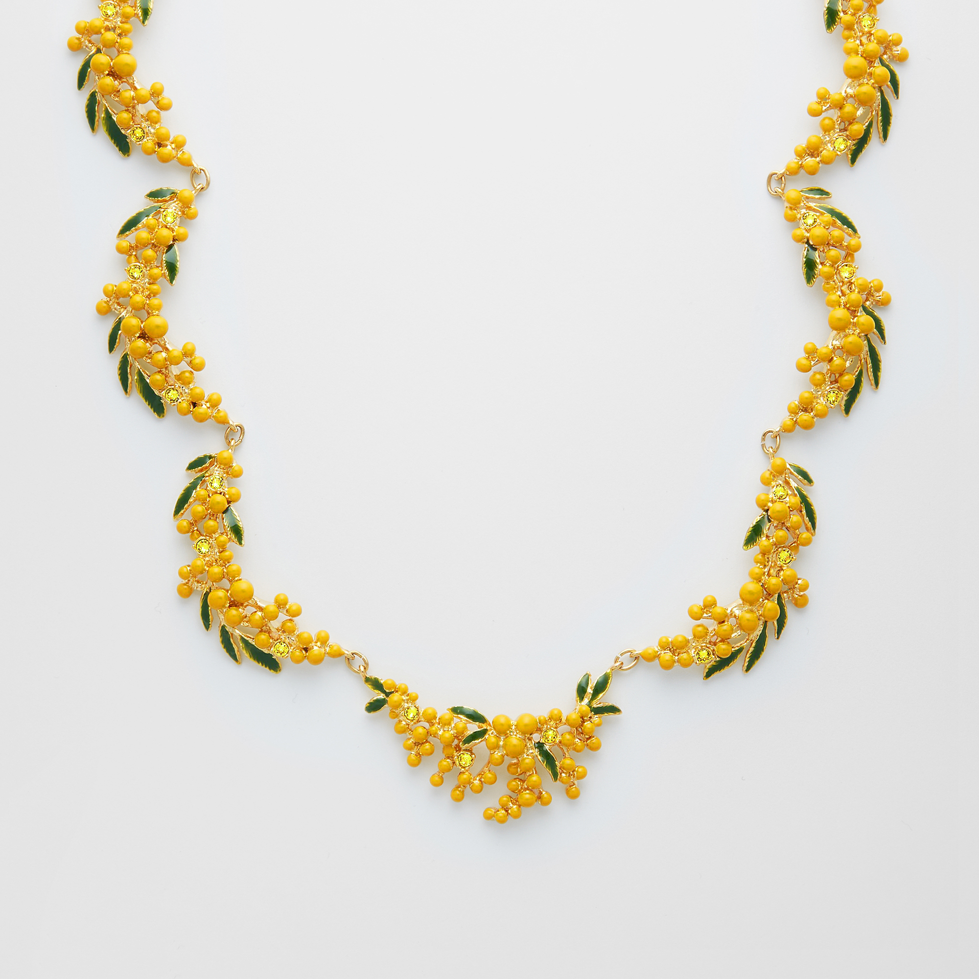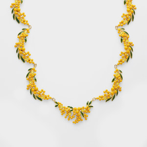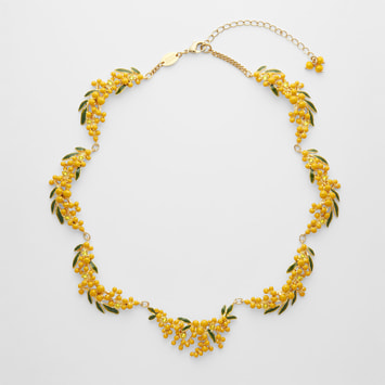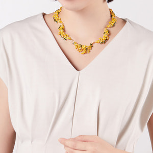 繊細なミモザの花束を重ねた、フォトジェニックなショートネックレス。