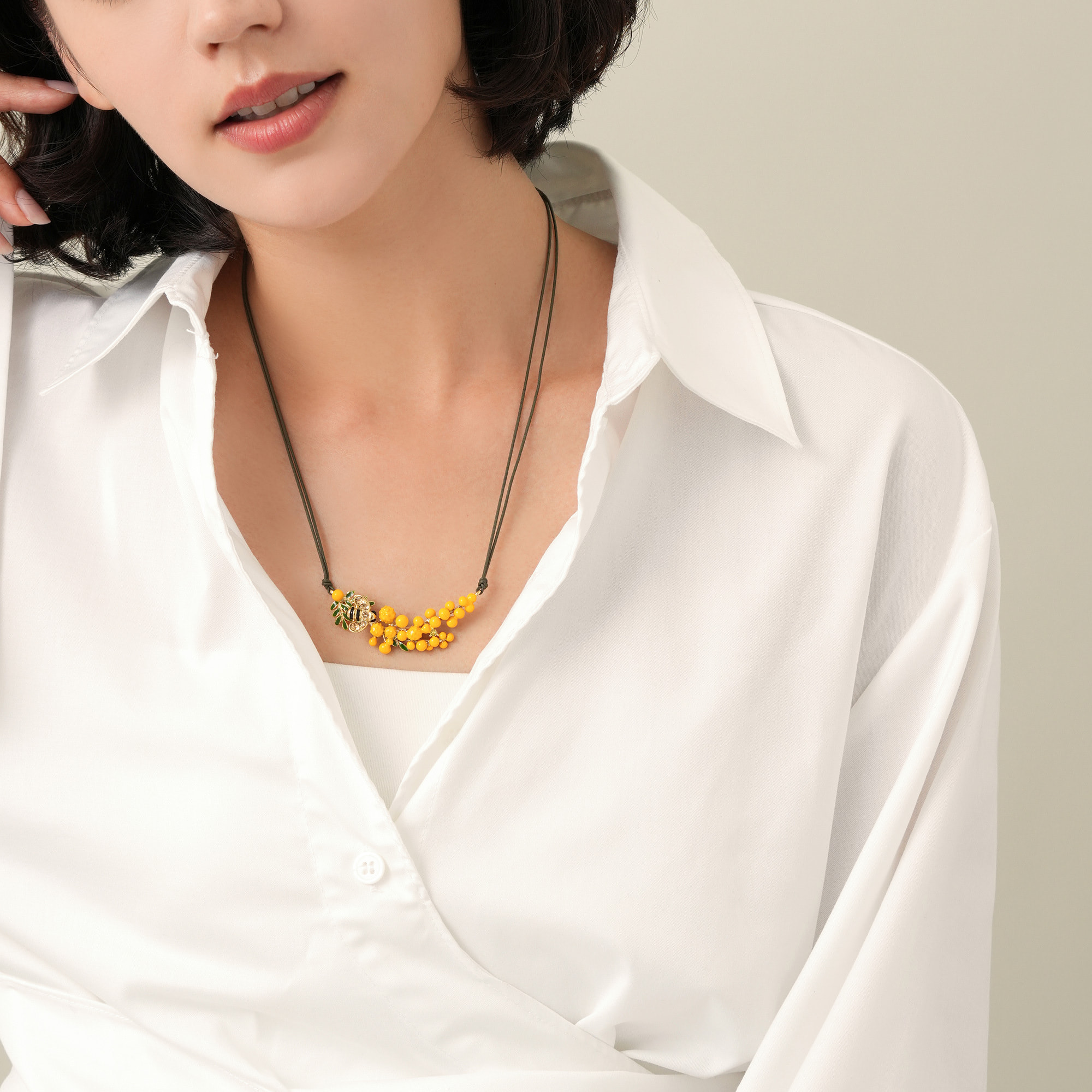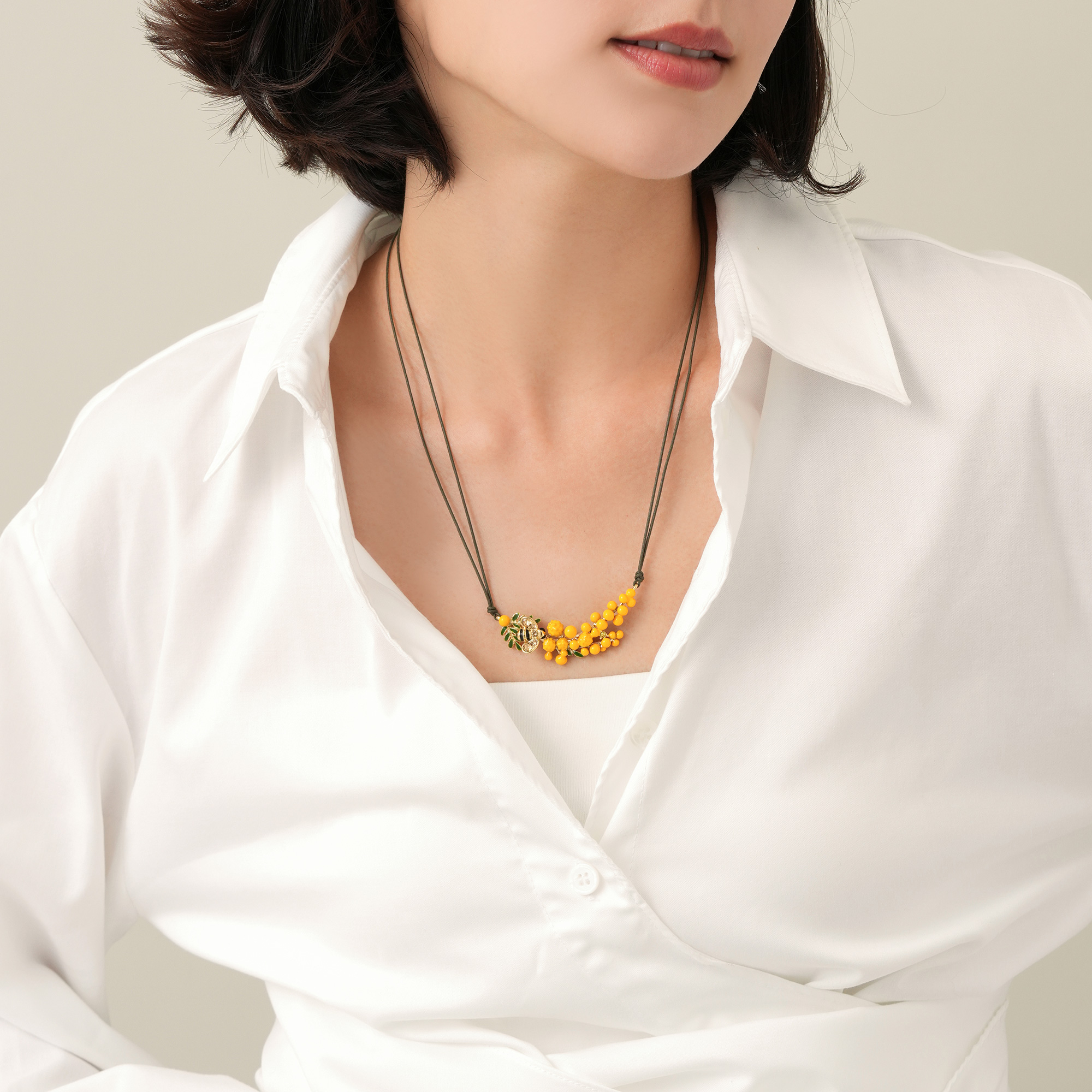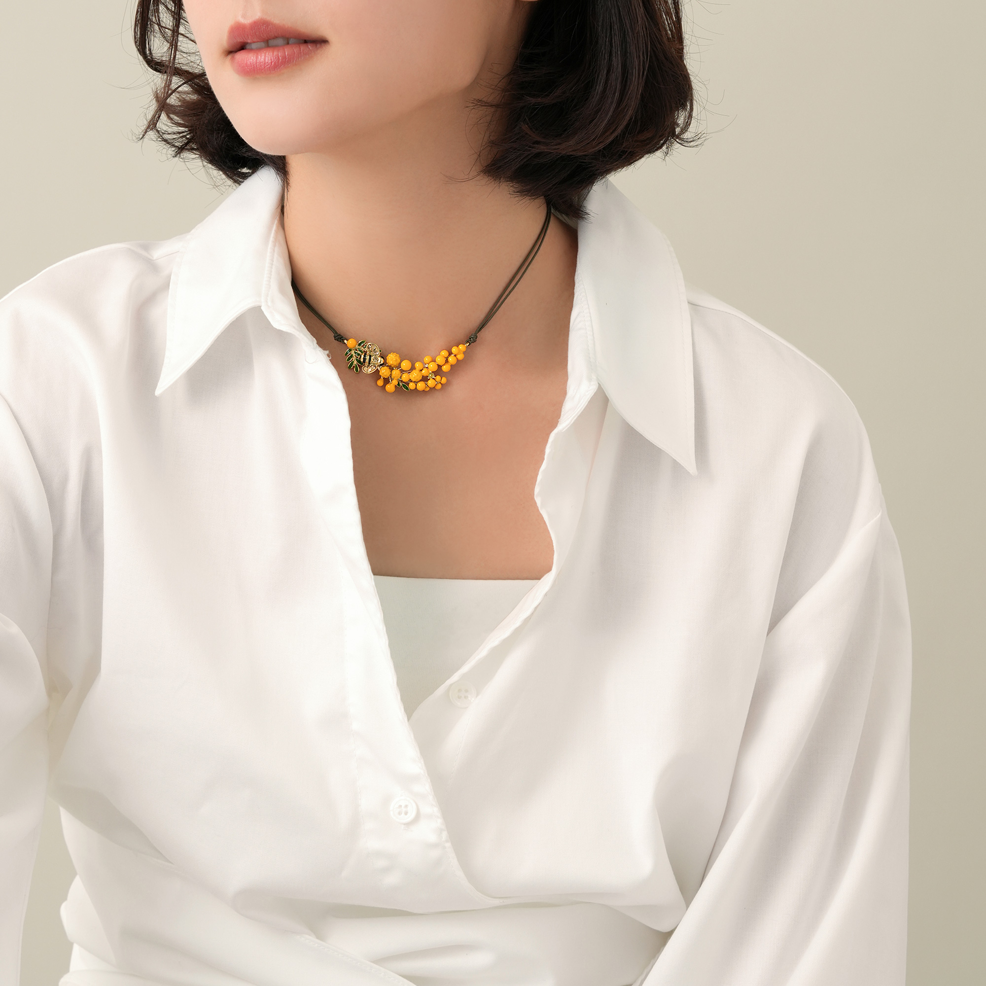 フレッシュなイエローカラーが春らしいミモザのネックレス。