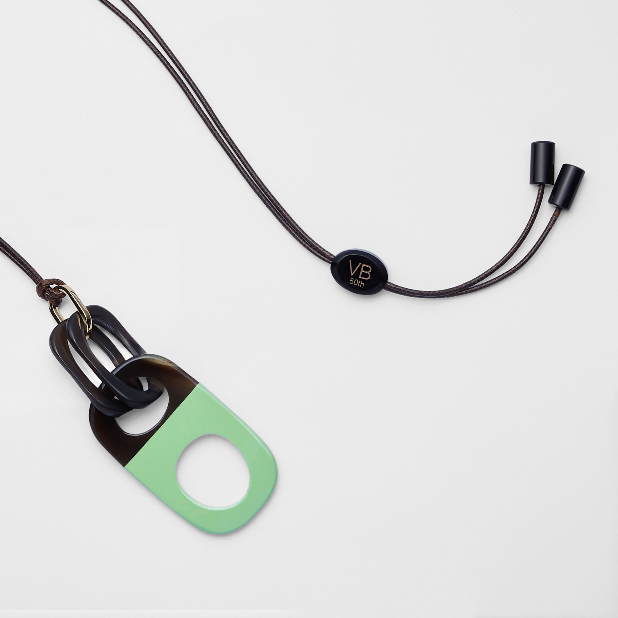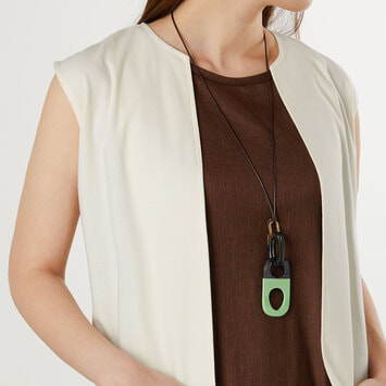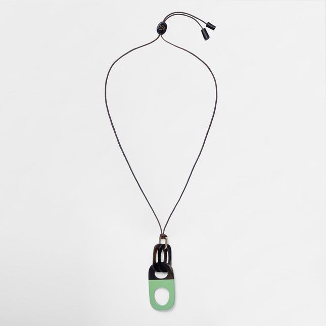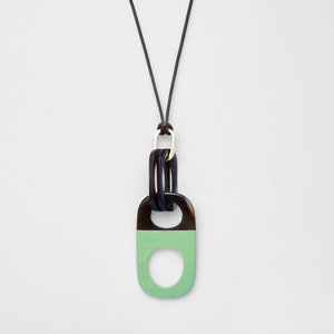 ナチュラルなブラウンカラーの水牛に、ライムグリーンの塗装を施した美しいネックレス。