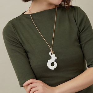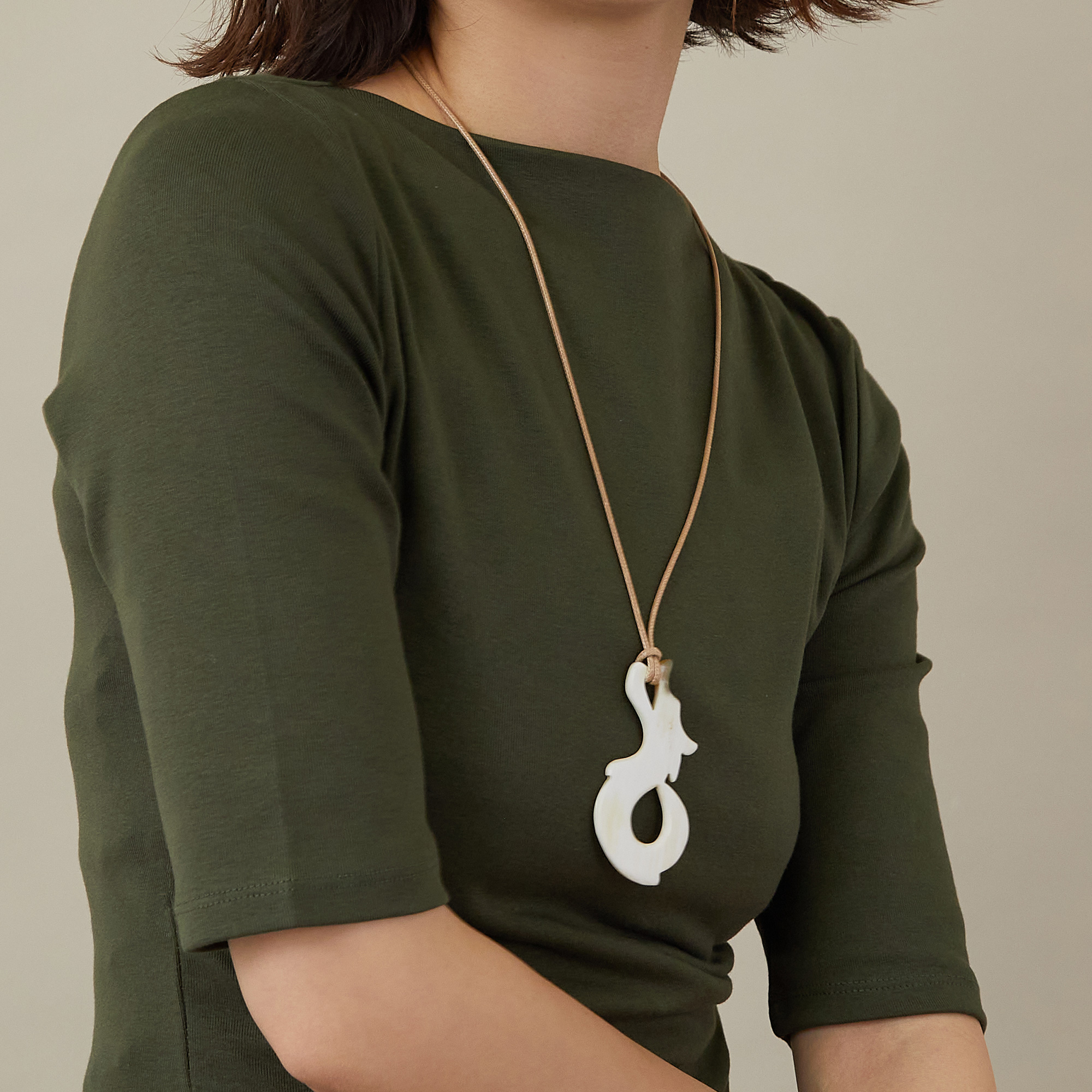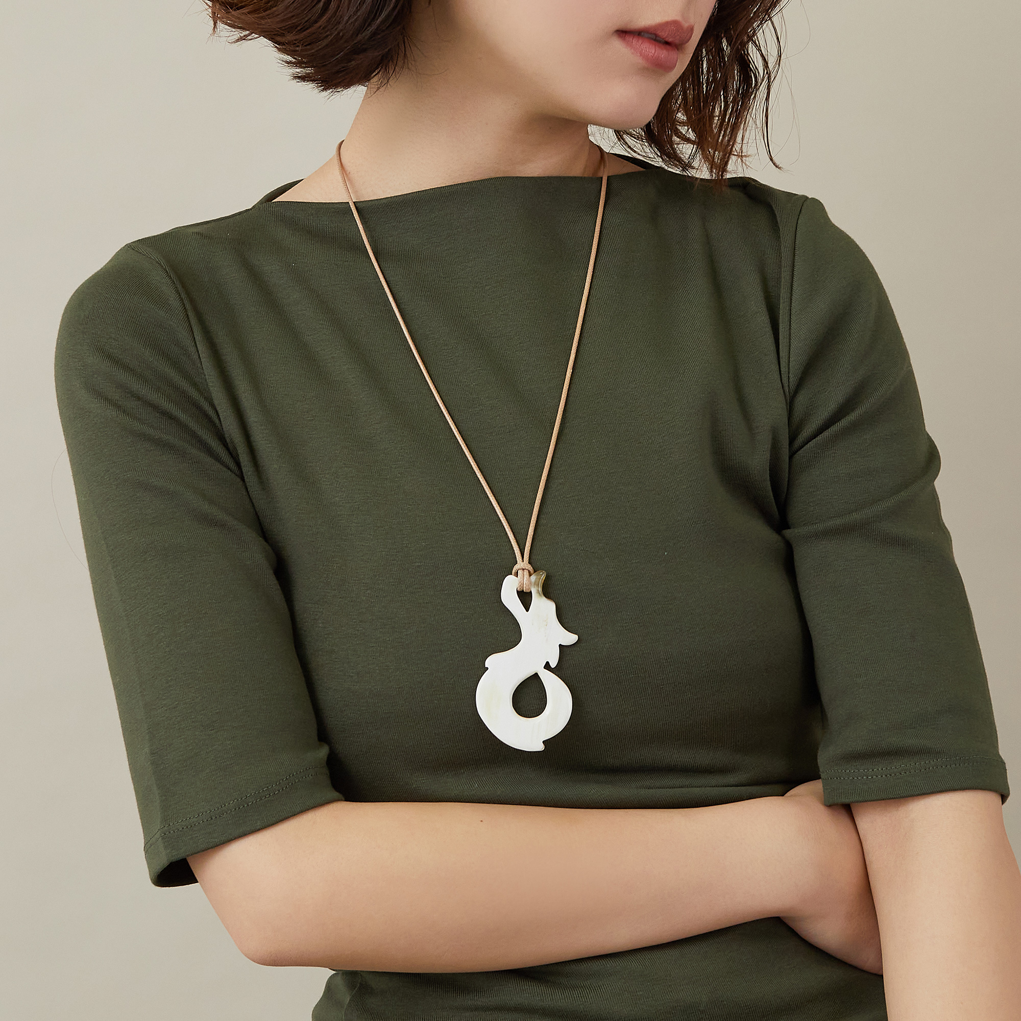 運気上昇の最強モチーフといわれるドラゴンを、自然素材で品良く仕上げたネックレス。