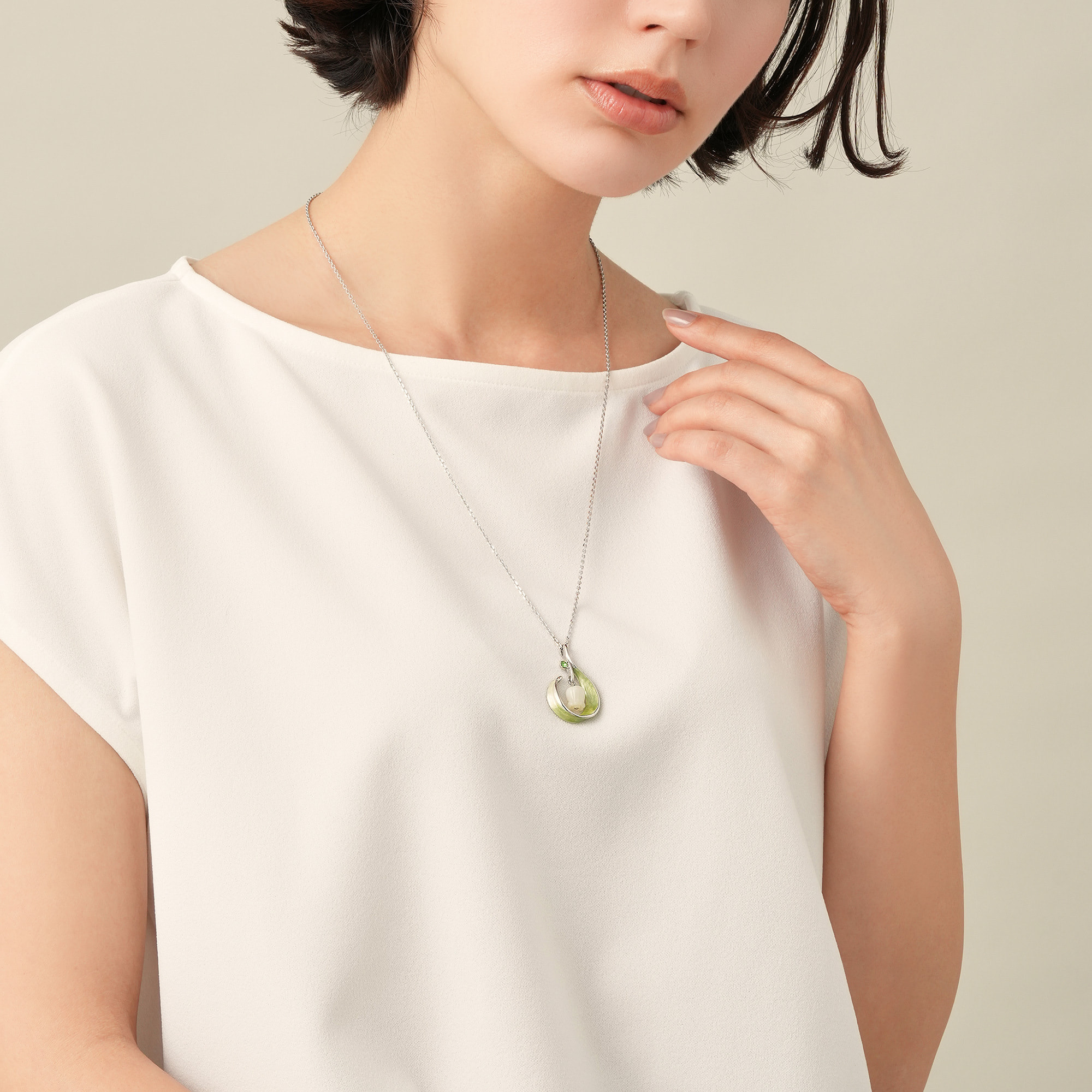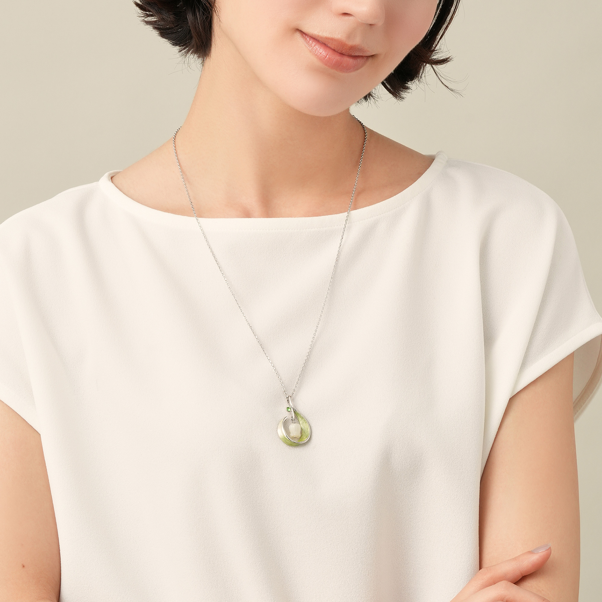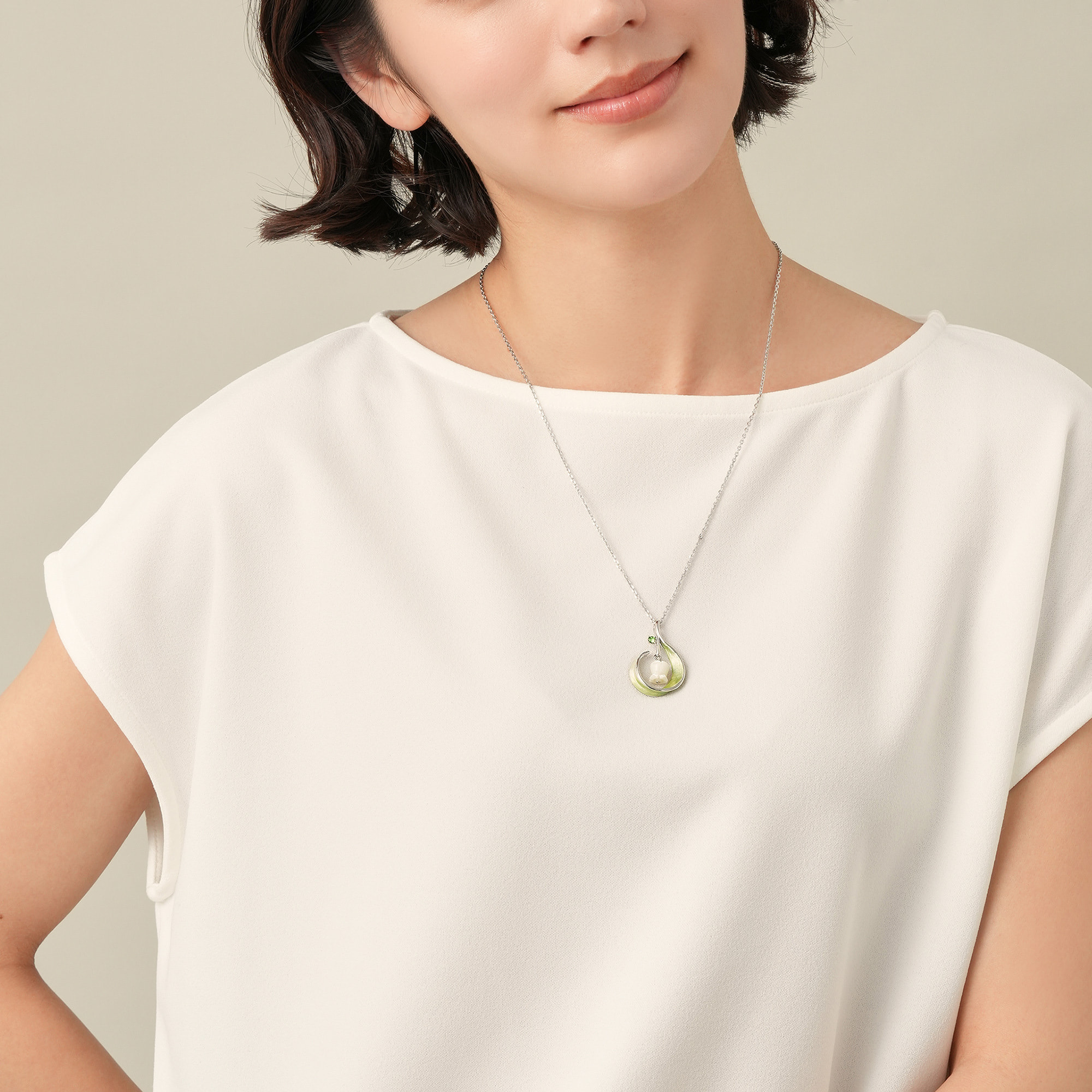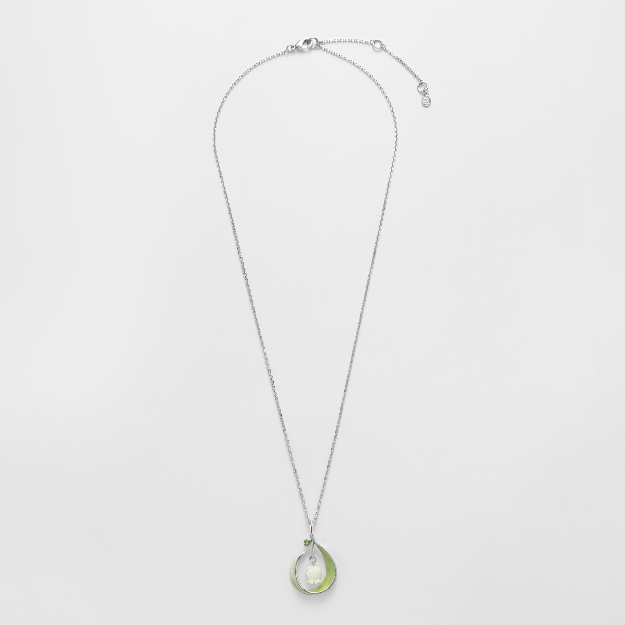 可憐なすずらんの花が伸びやかな葉の中で揺れるネックレス。