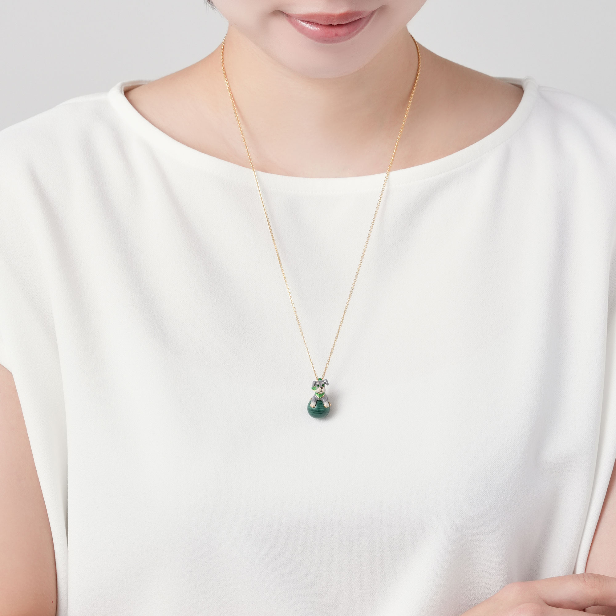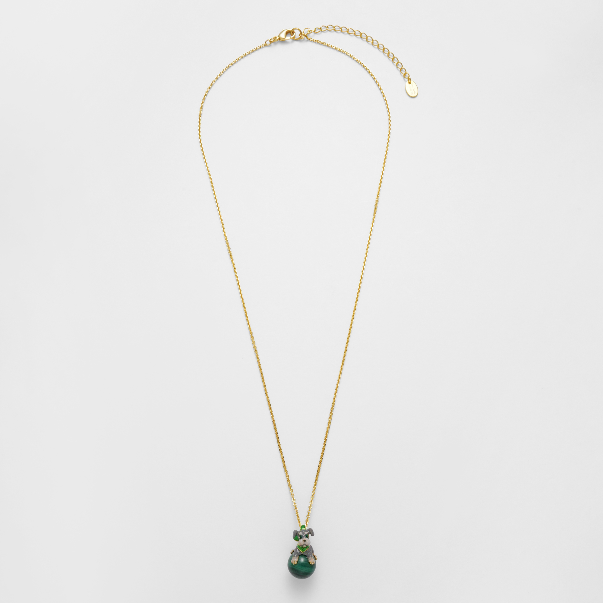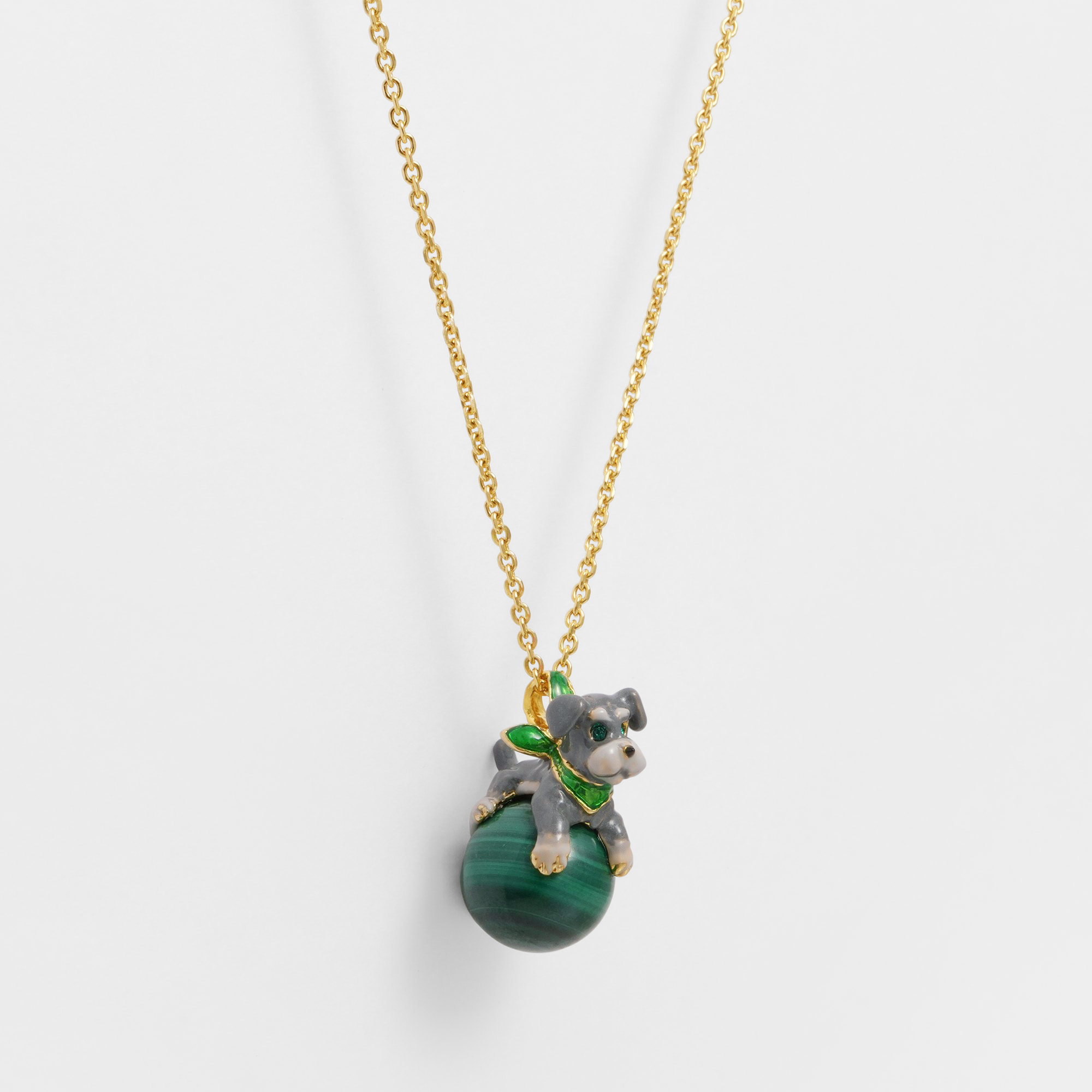 ドイツ・シュニール織のブランド「FEILER(フェイラー)」とのコラボレーションアイテム。様々な種類の犬たちを愛らしく描いたヴァンドームブティックオリジナルのフェイラー製ハンカチと、オリジナリティー溢れるアクセサリーとのスペシャルなセットです。長く立派な口ひげと愛嬌たっぷりの眉毛がチャームポイントのミニチュア・シュナウザー。明るく好奇心旺盛で遊ぶのが大好きな性格を、そのままネックレスで表現しました。マラカイトの石をボールに見立て、ちょこんとお座りする姿がとってもキュート。熟練した職人によって一つ一つ手作業で描かれたグレイッシュなカラーは、上品なソルト&ペッパー。石の色とリンクしたフレッシュなグリーンカラーのスカーフが、お洒落なアクセントに。マラカイトは心を癒し「魔除け」の石としても有名です。大切な方へのギフトにもぴったりです。 ▼ FEILER Collection <LOVELY DOGS Vol.01> はこちらhttps://vendome.jp/vendome_boutique/feature/boutique_feiler2 ▼ FEILER Collection <LOVELY DOGS Vol.02> はこちらhttps://vendome.jp/vendome_boutique/feature/boutique_feiler3 ▼ FEILER Collection <PLAYING CATS> はこちらhttps://vendome.jp/vendome_boutique/feature/boutique_feiler