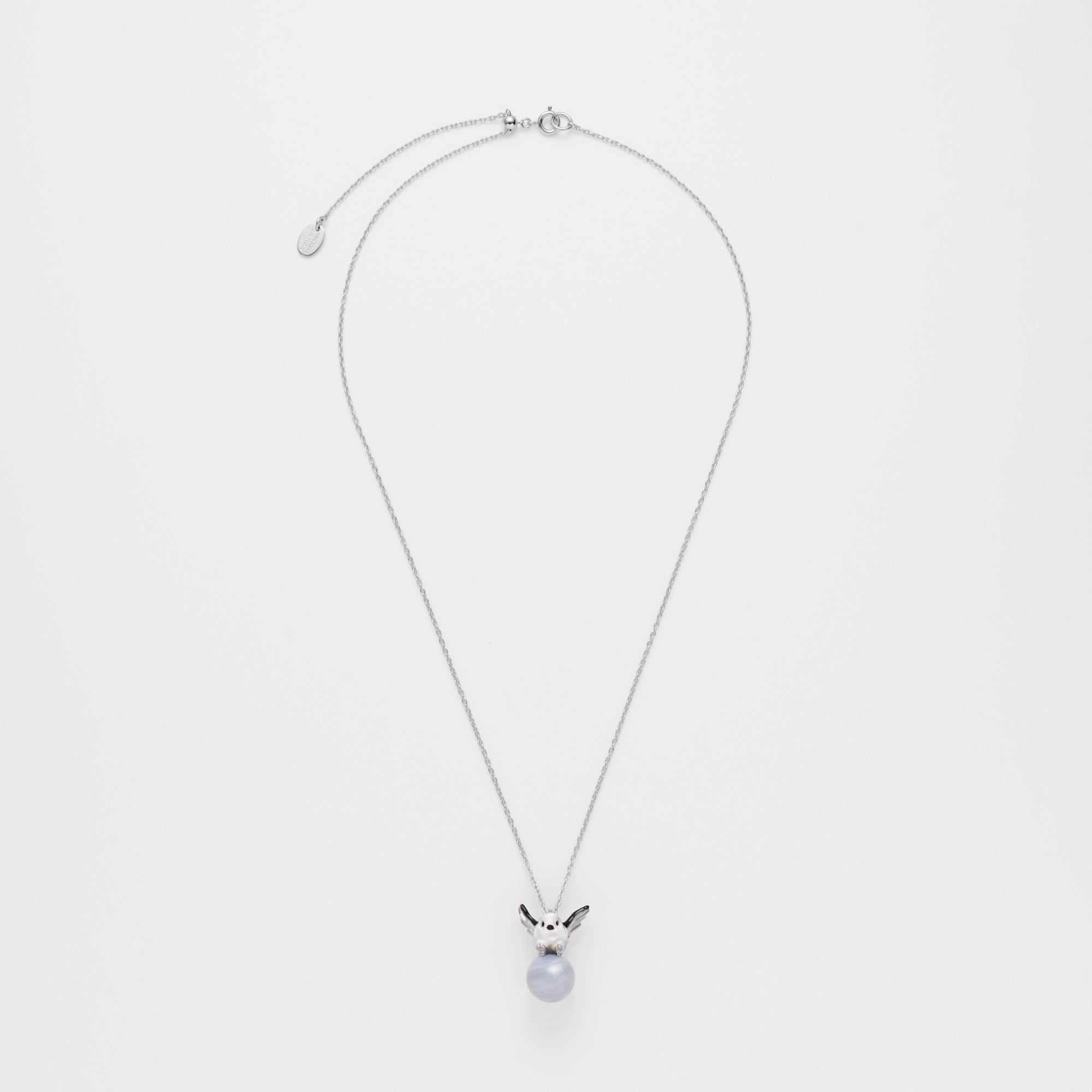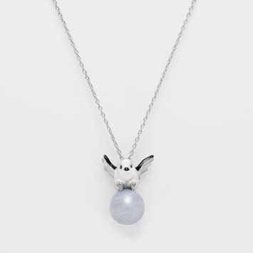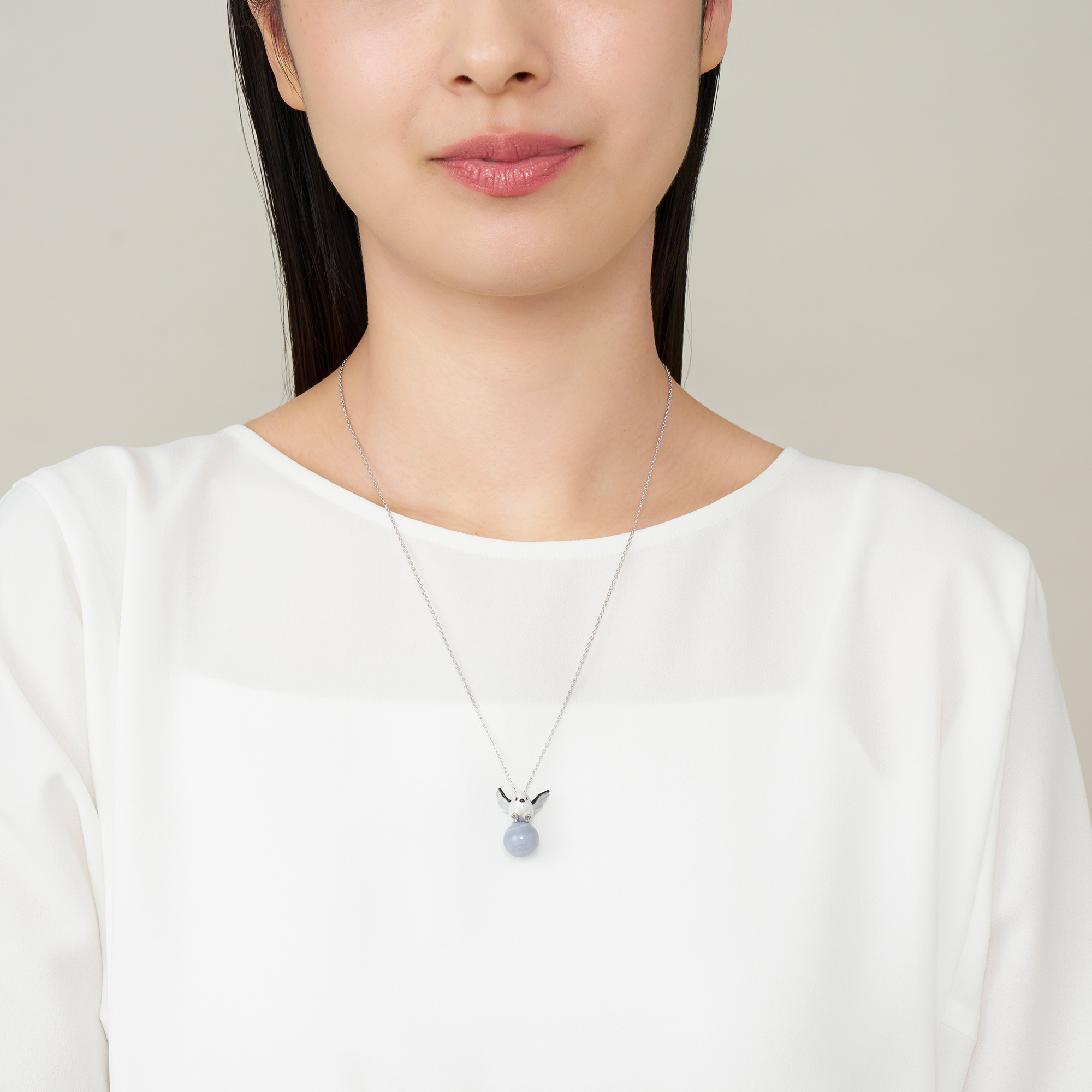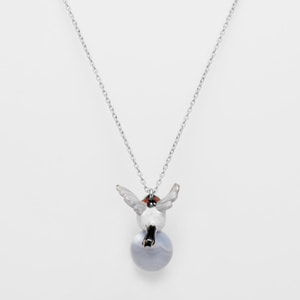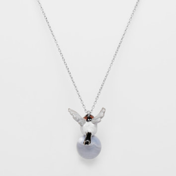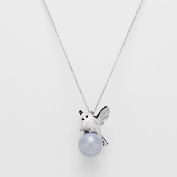 木の枝から颯爽と飛び立つ1羽のシマエナガ。冬の森の中で暮らすシマエナガの一瞬の動きをネックレスにしました。
