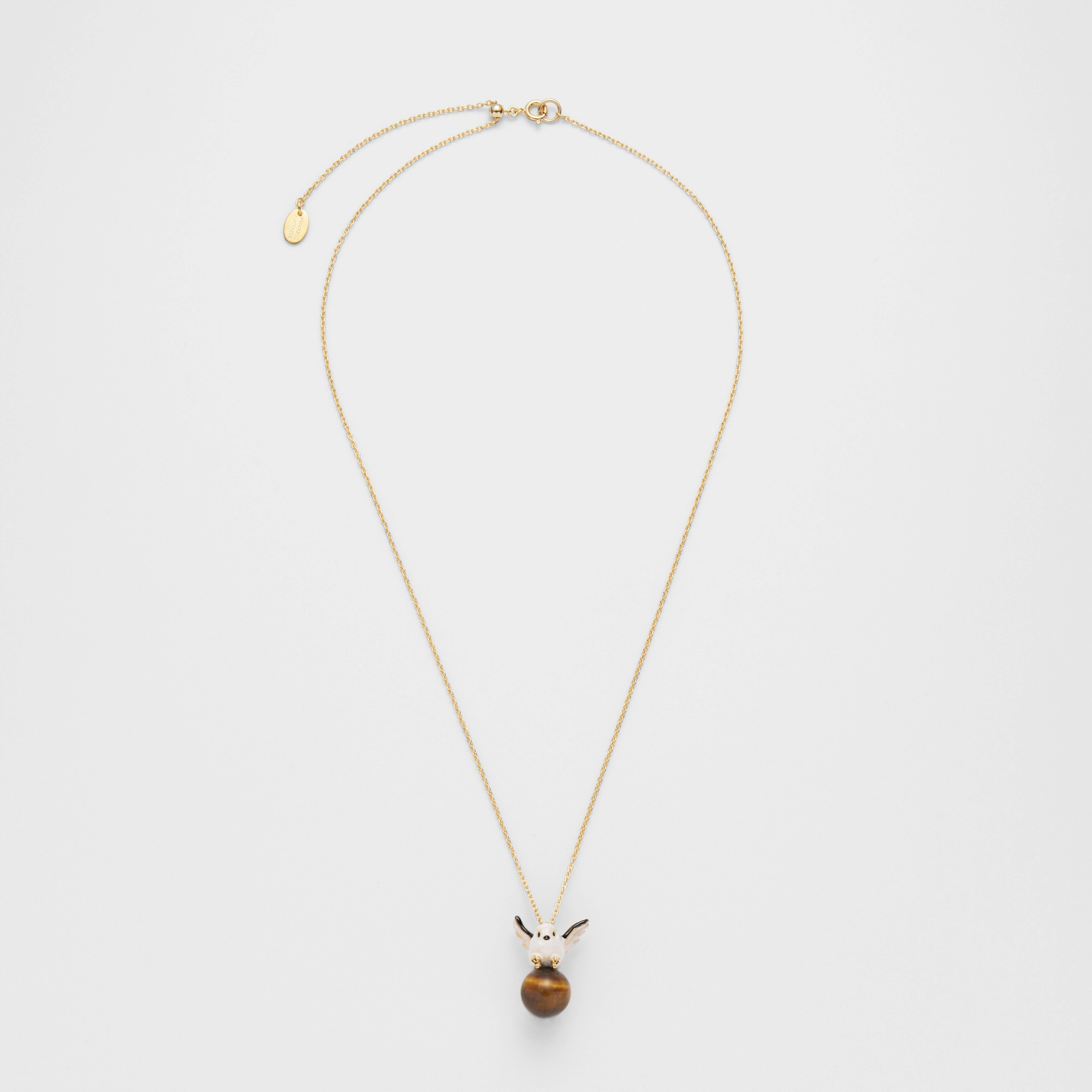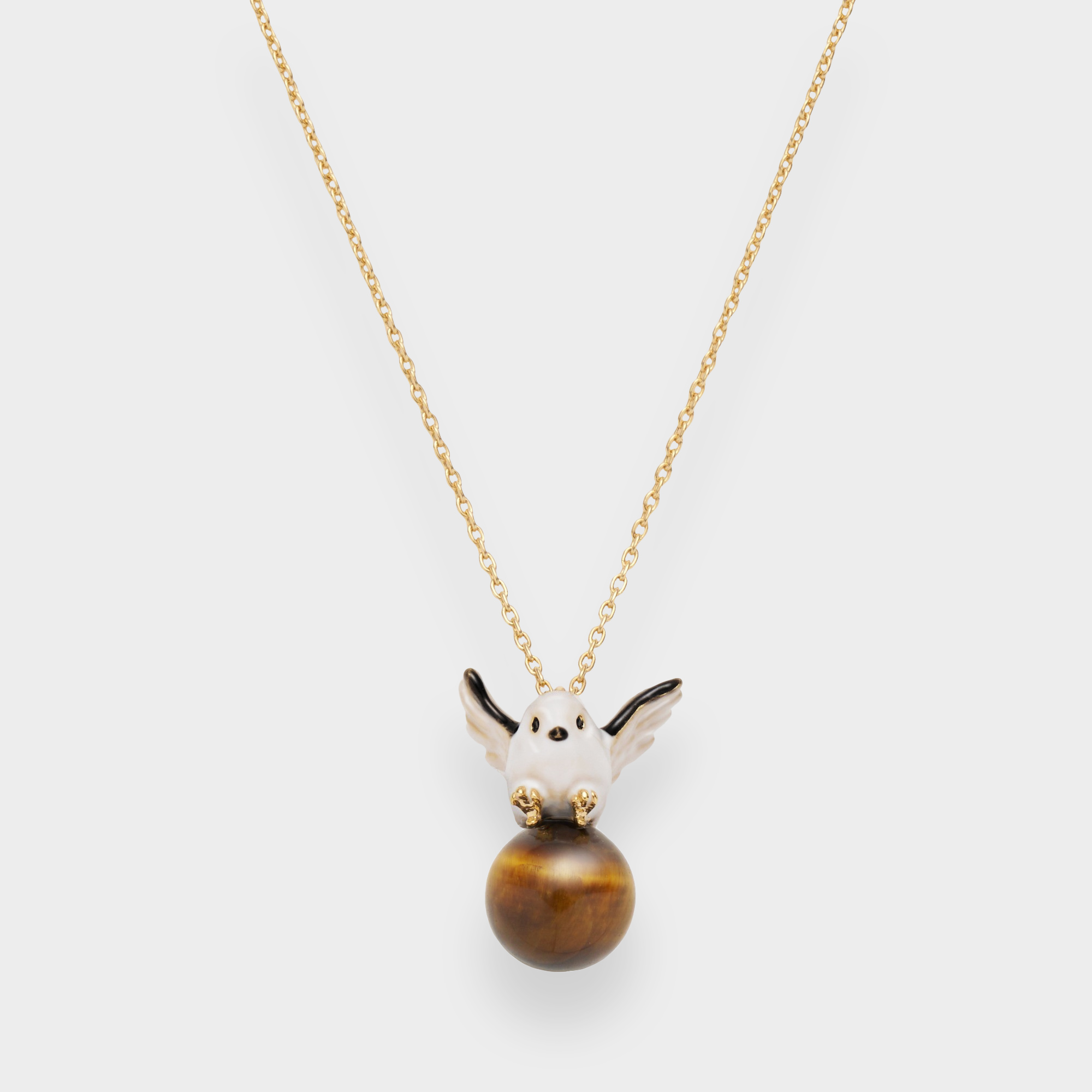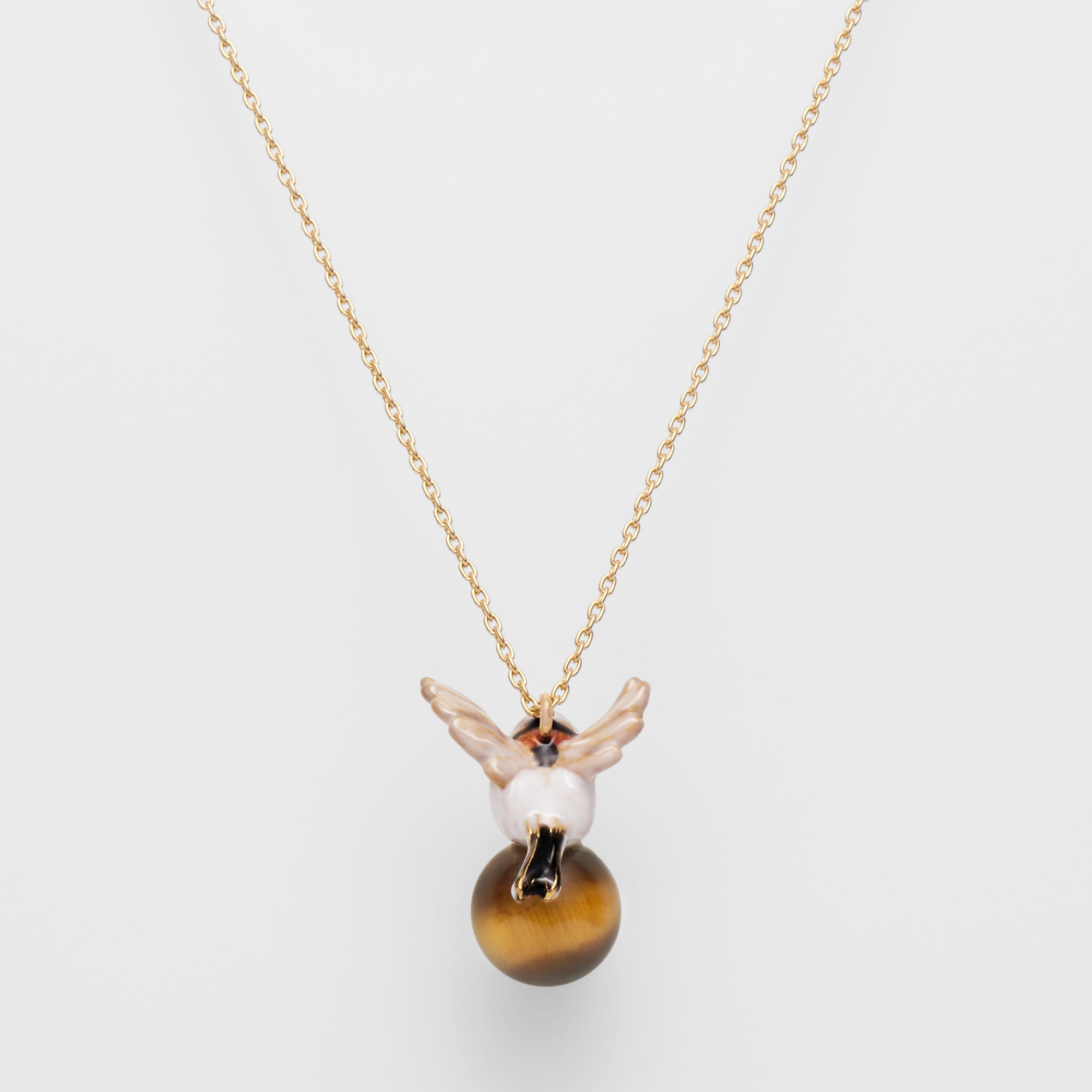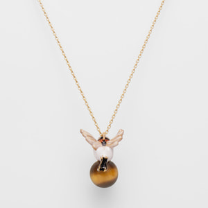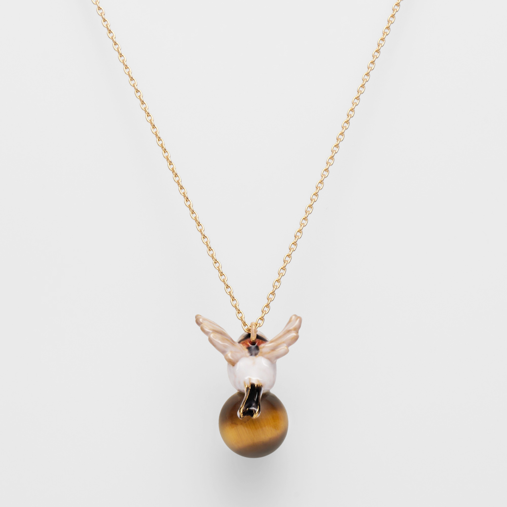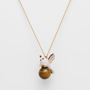 木の枝から颯爽と飛び立つ1羽のシマエナガ。冬の森の中で暮らすシマエナガの一瞬の動きをネックレスにしました。