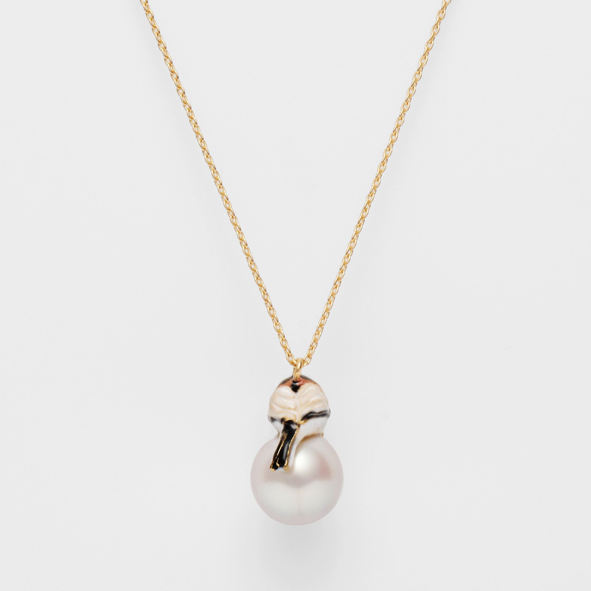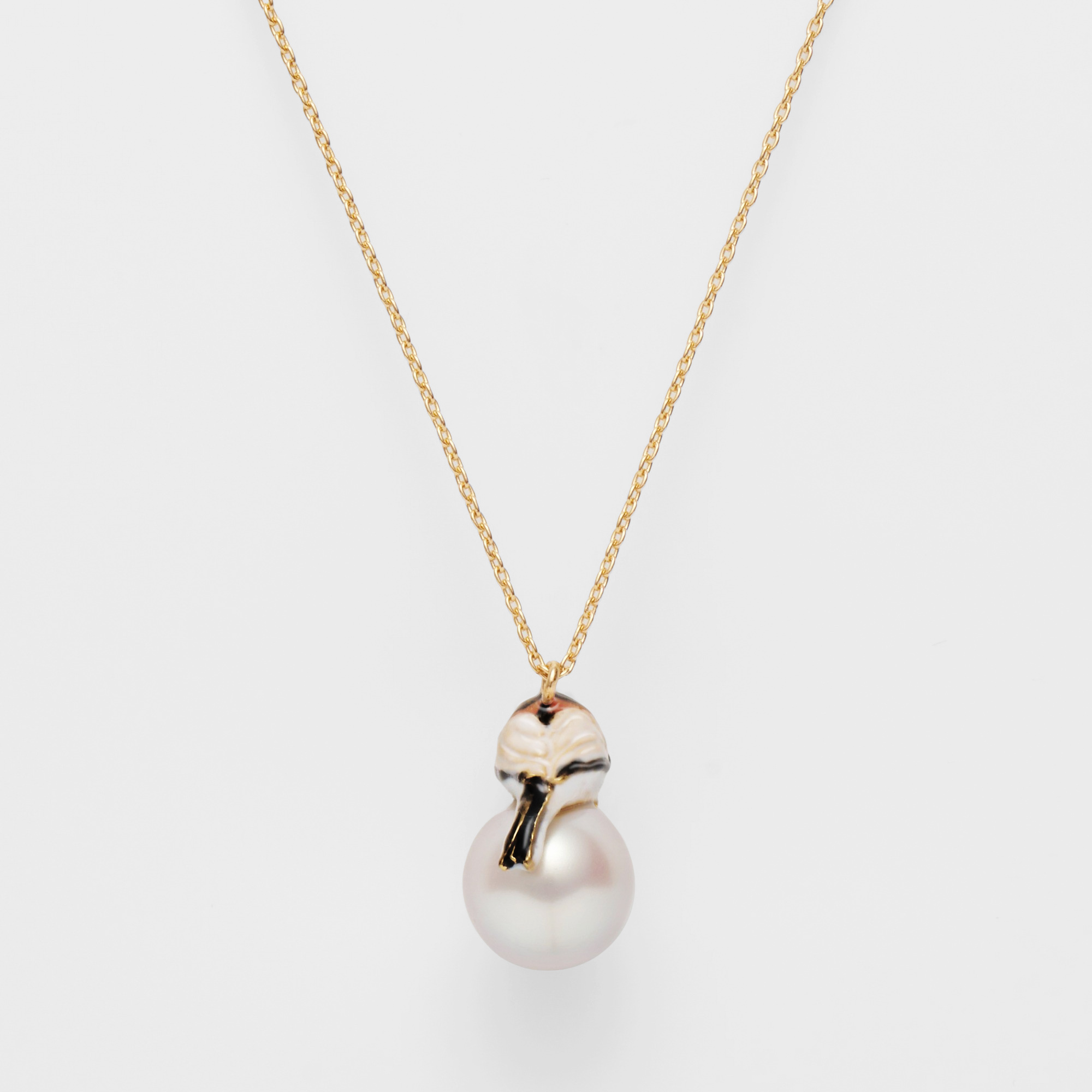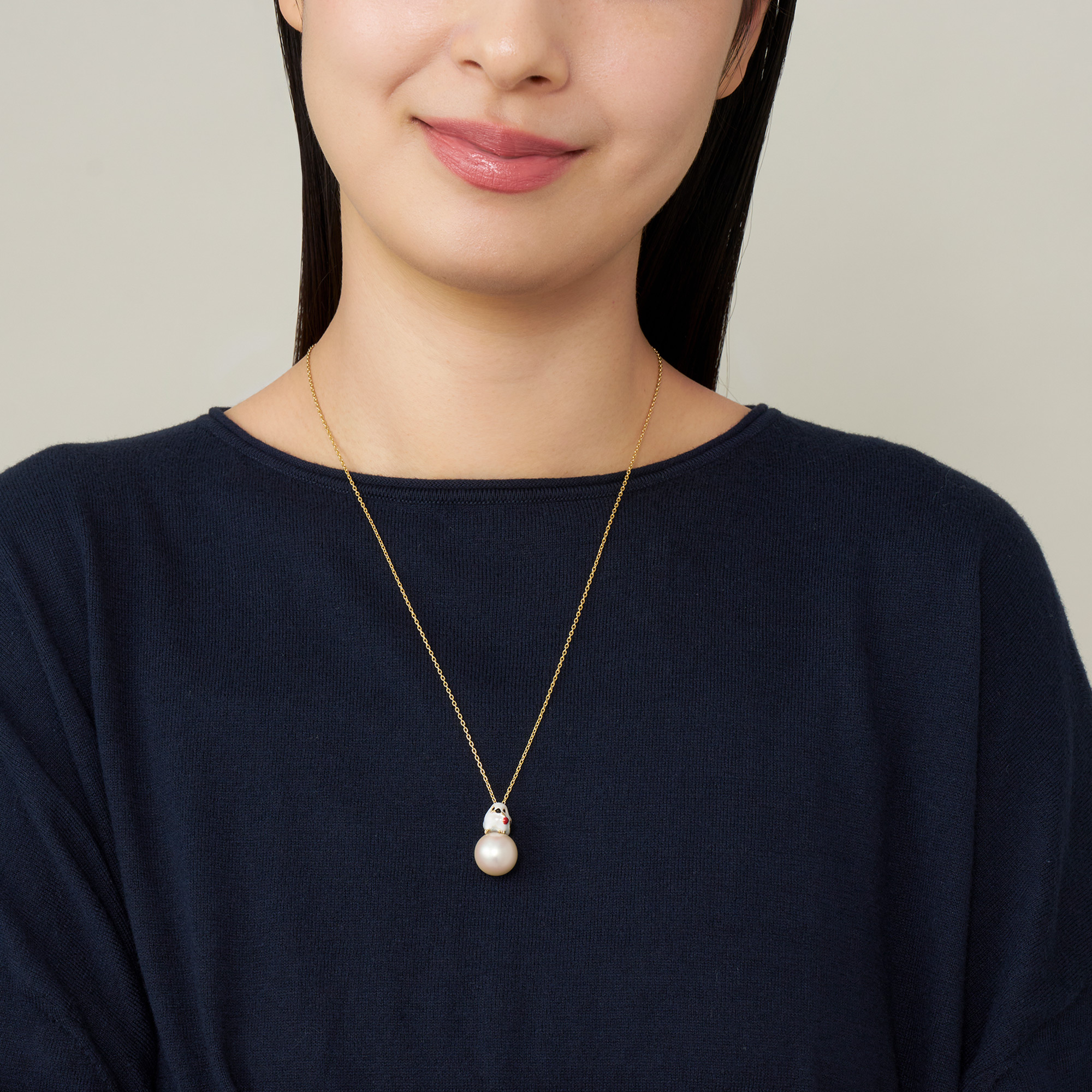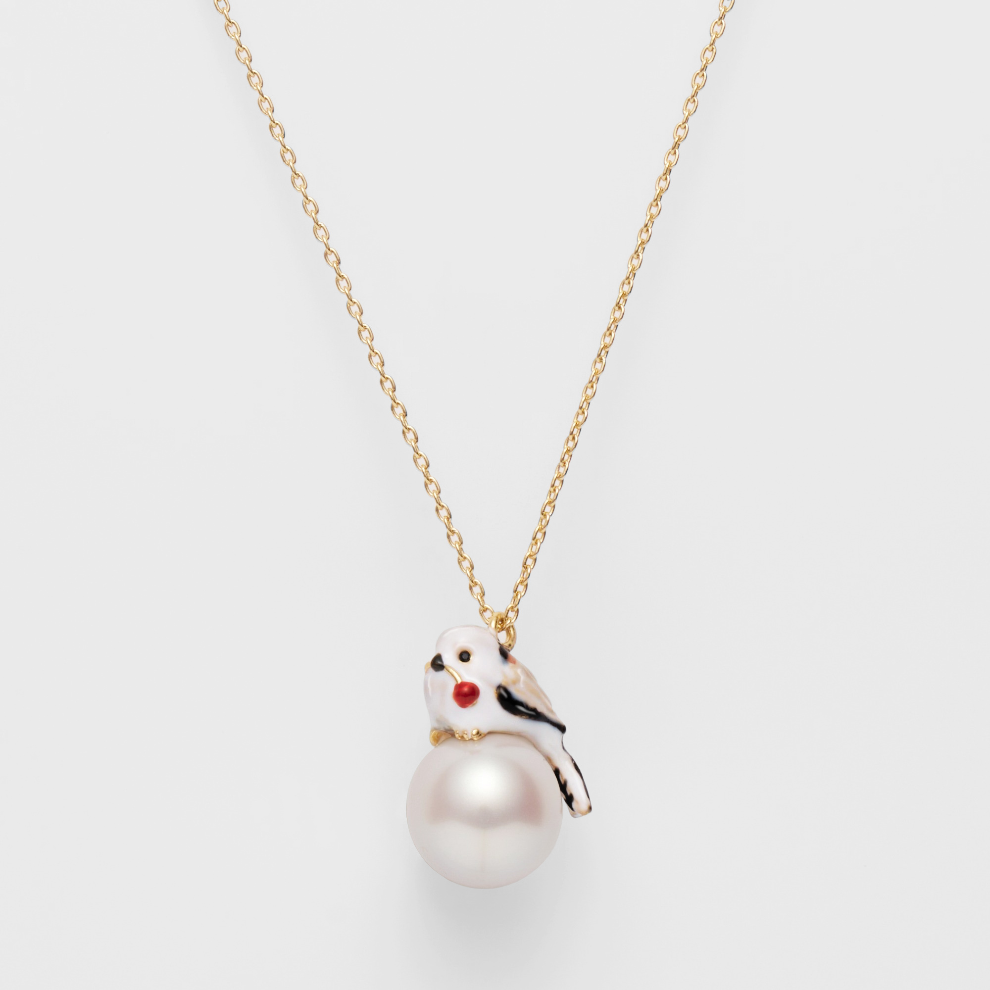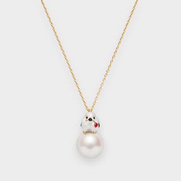 ふわふわの真っ白い羽毛にまん丸シルエットが愛らしいシマエナガのネックレス。