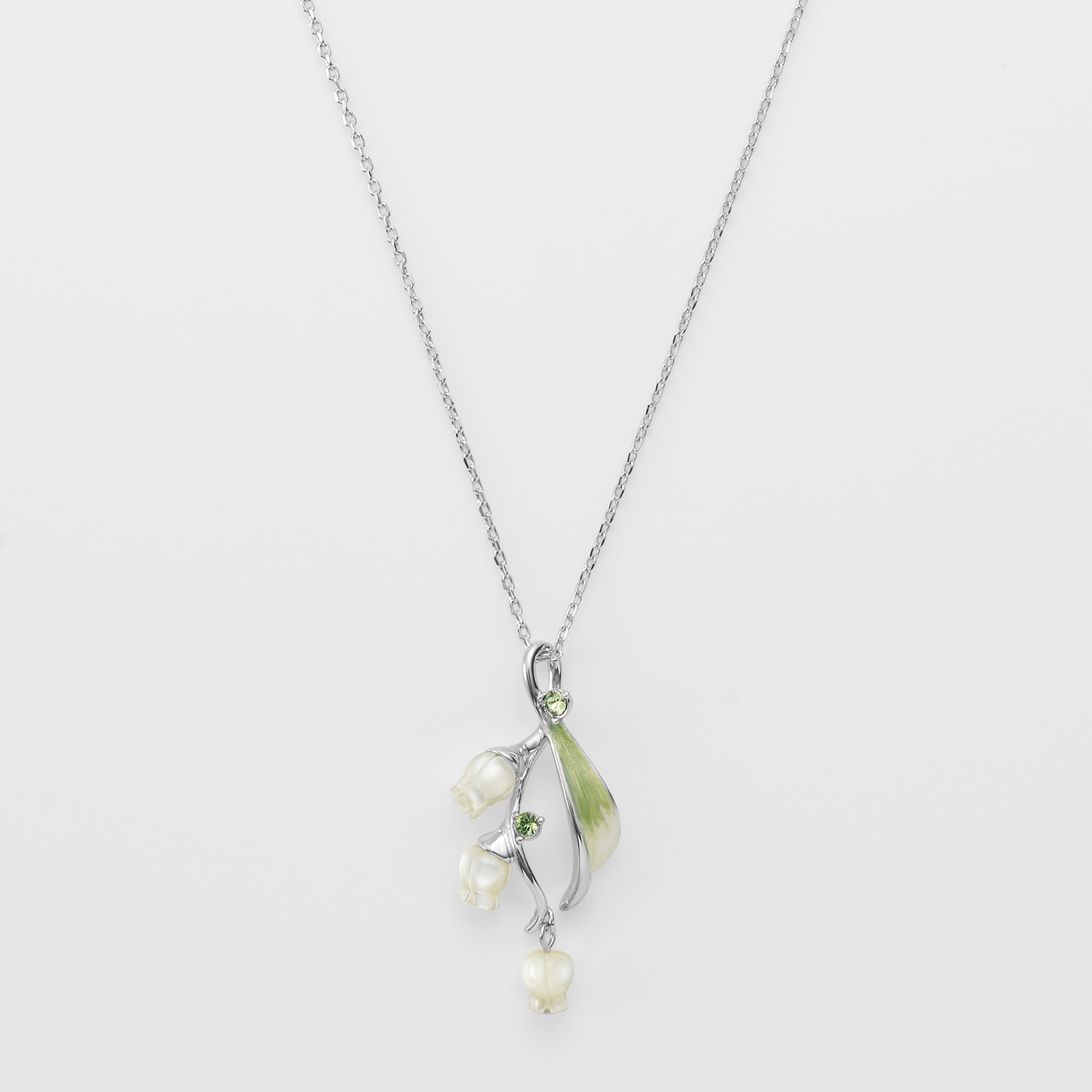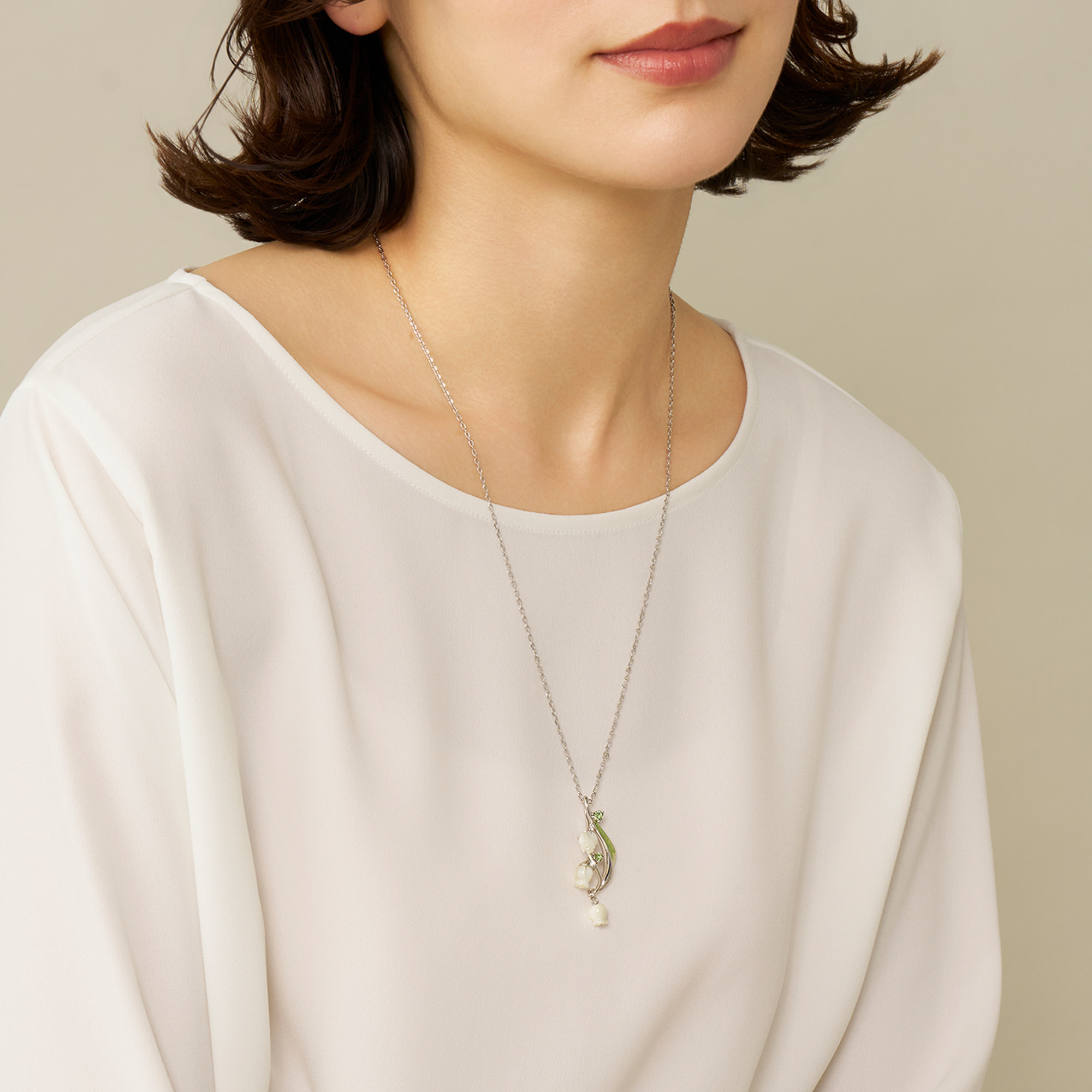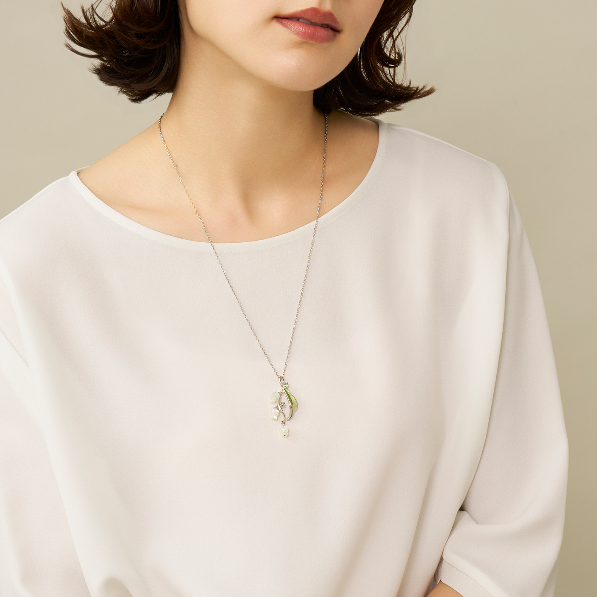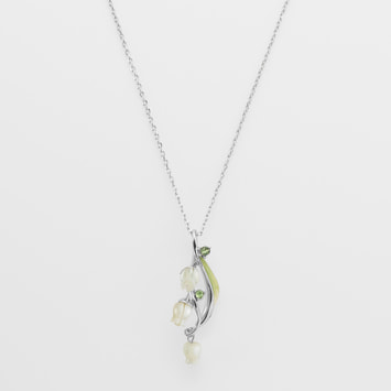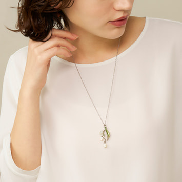 流れるような葉と白い花が胸元に咲くすずらんのネックレス。
