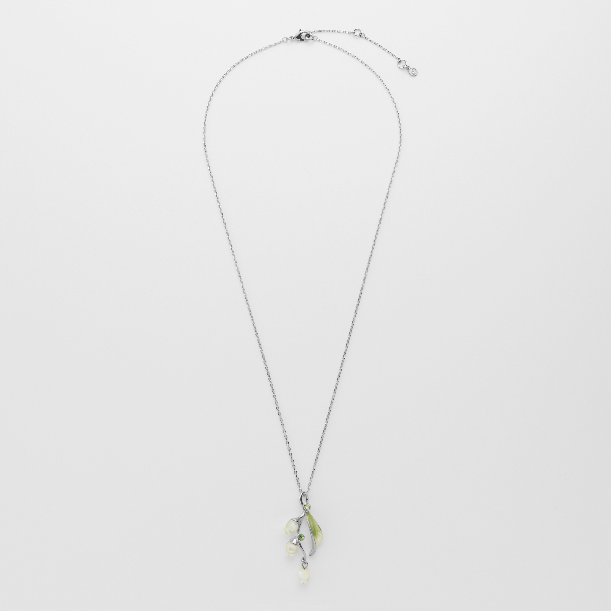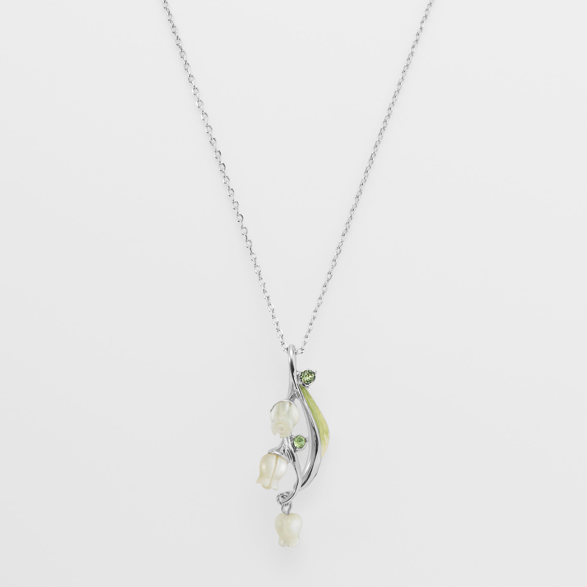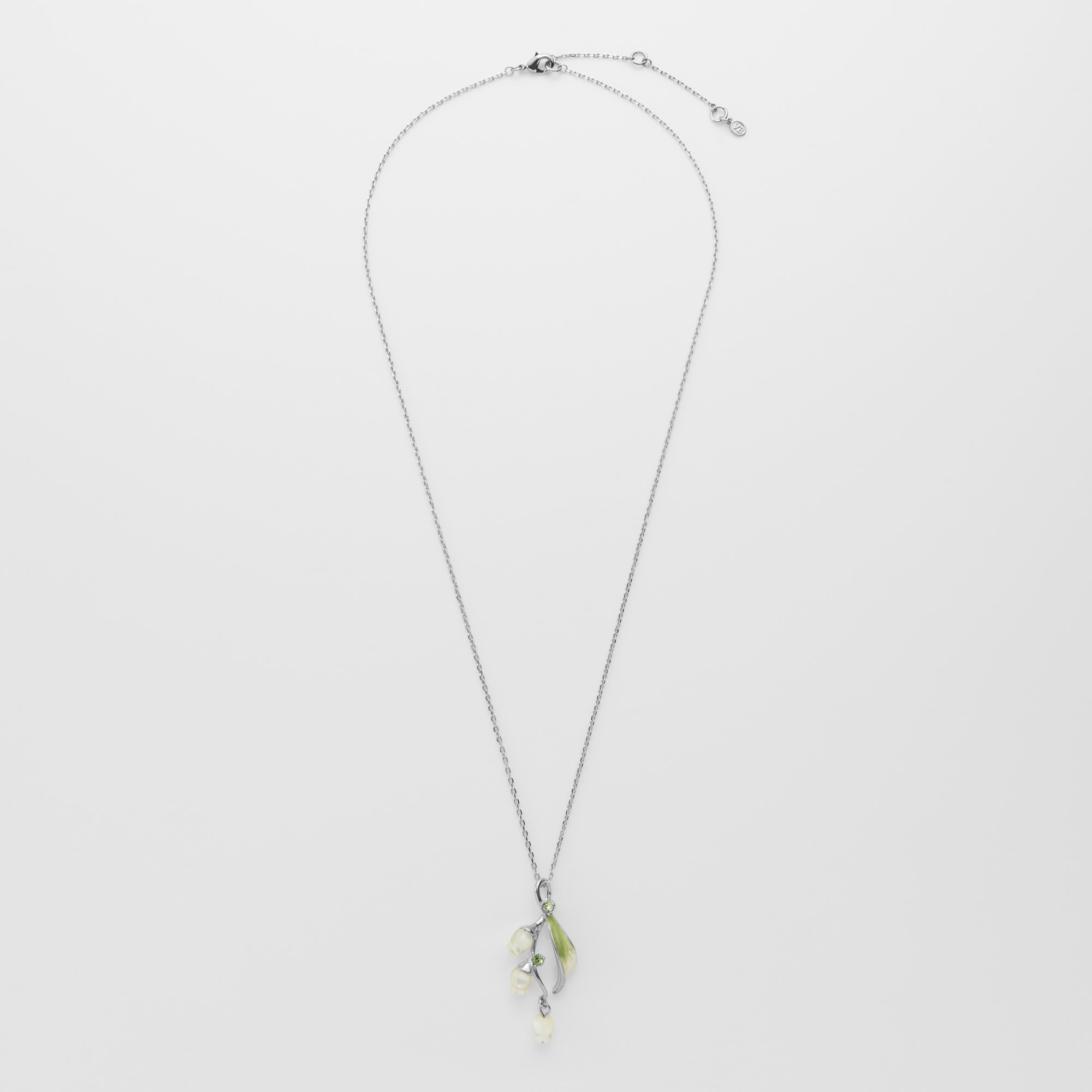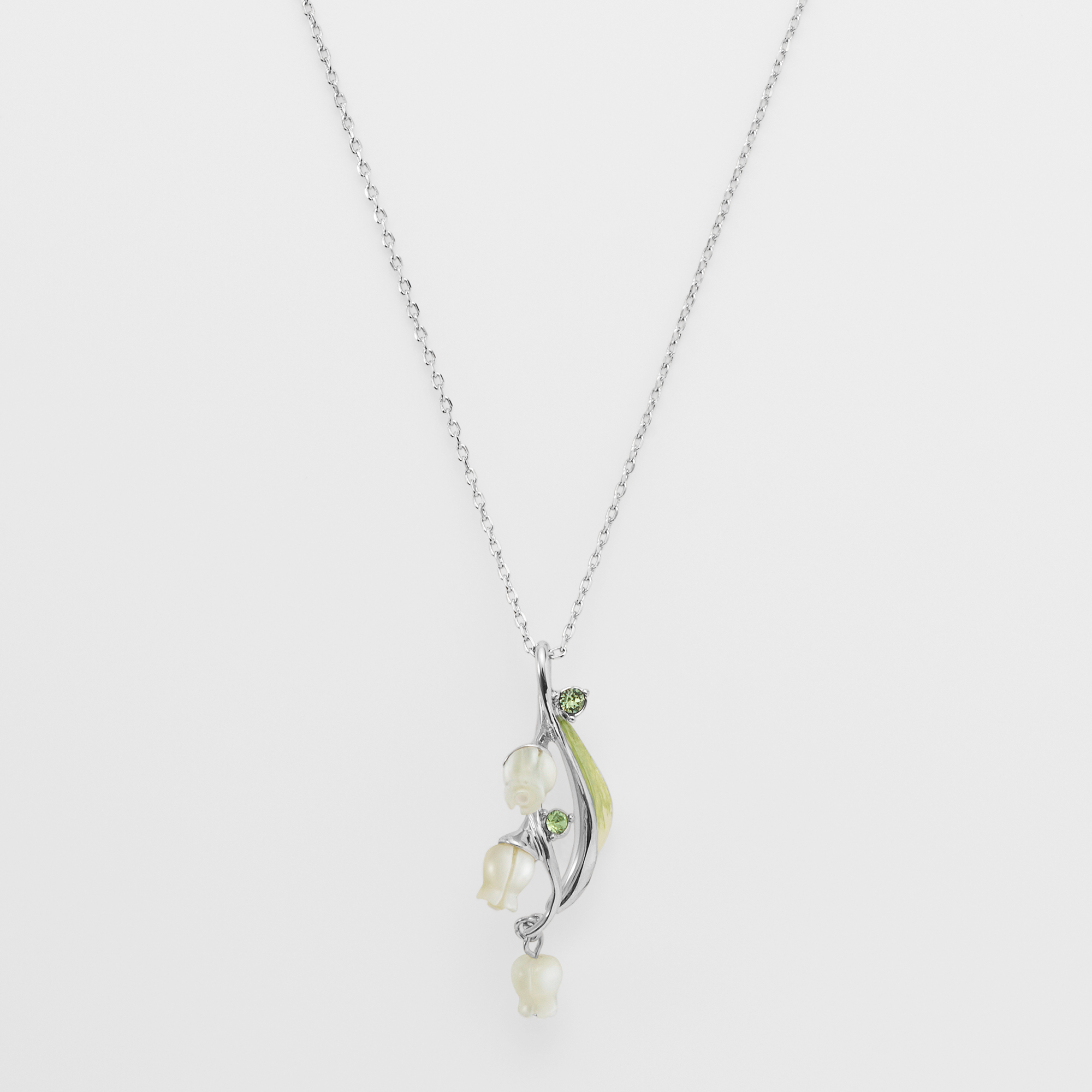流れるような葉と白い花が胸元に咲くすずらんのネックレス。
