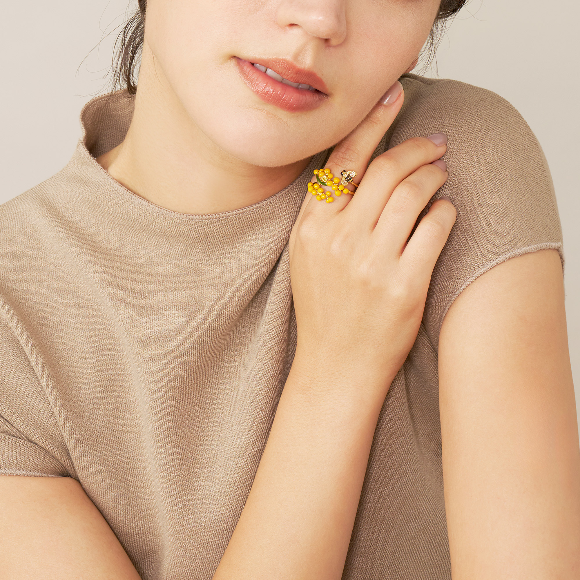 くるくると飛ぶミツバチの軌道をそのまま描いたような遊び心あふれるデザインは、身につけるだけで気分も弾みます。
