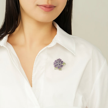 散りばめられたカットガラスが、紫陽花に落ちる雨粒のように輝きます。