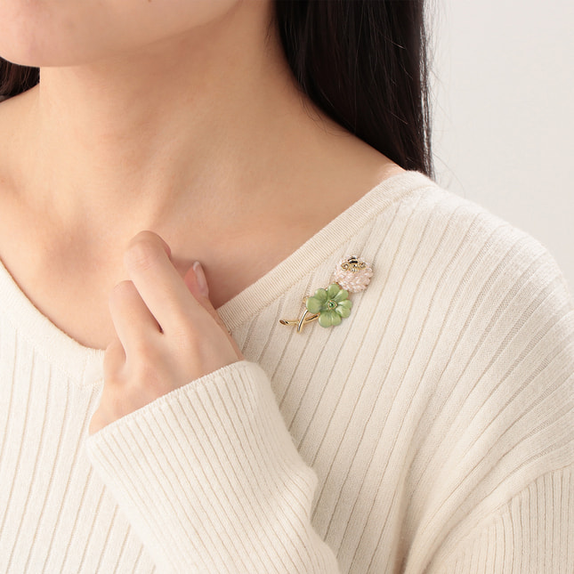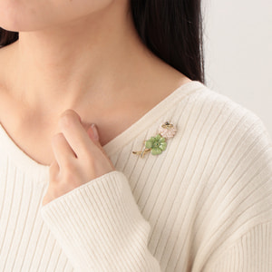 幸せの四つ葉のクローバーとシロツメクサにミツバチが止まったキュートなブローチ。ニュアンスある柔らかなグリーンカラーのクローバーとハチはまるで胸元に幸運を運んでいるよう。ハチは巣の中にたっぷりと蜜を蓄えることから、金運アップの象徴ともいわれていますハッピーモチーフのハチとクローバーのブローチを身につけてスタイリングのポイントに。※セール価格でご購入の商品には、品質証明書の印字箇所に【SALE】表記が入ります。