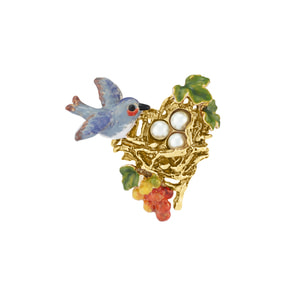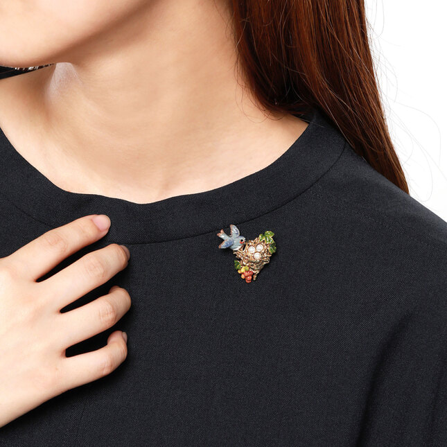 甲州ブドウ畑に訪れるヒヨドリが毎年巣を作り、卵を産みます。自然豊かな甲州に息づく生命を愛らしいブローチにしました。