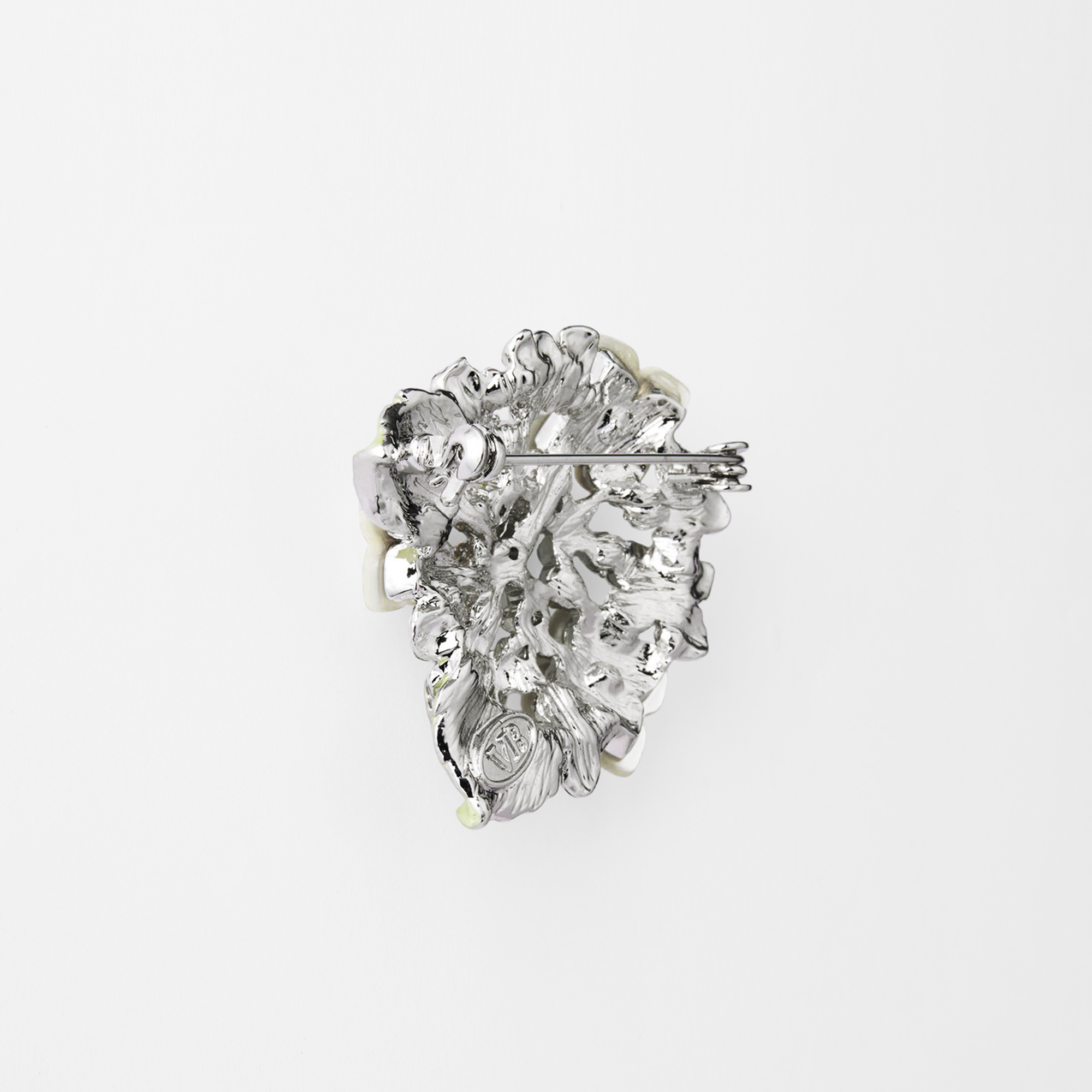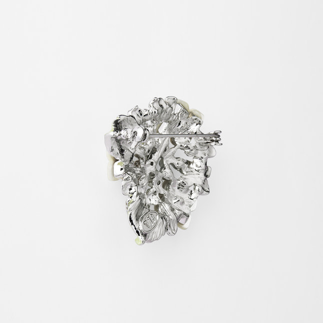 自然素材の柔らかな輝きが美しい白蝶貝の小花が上品なガクアジサイのブローチ。