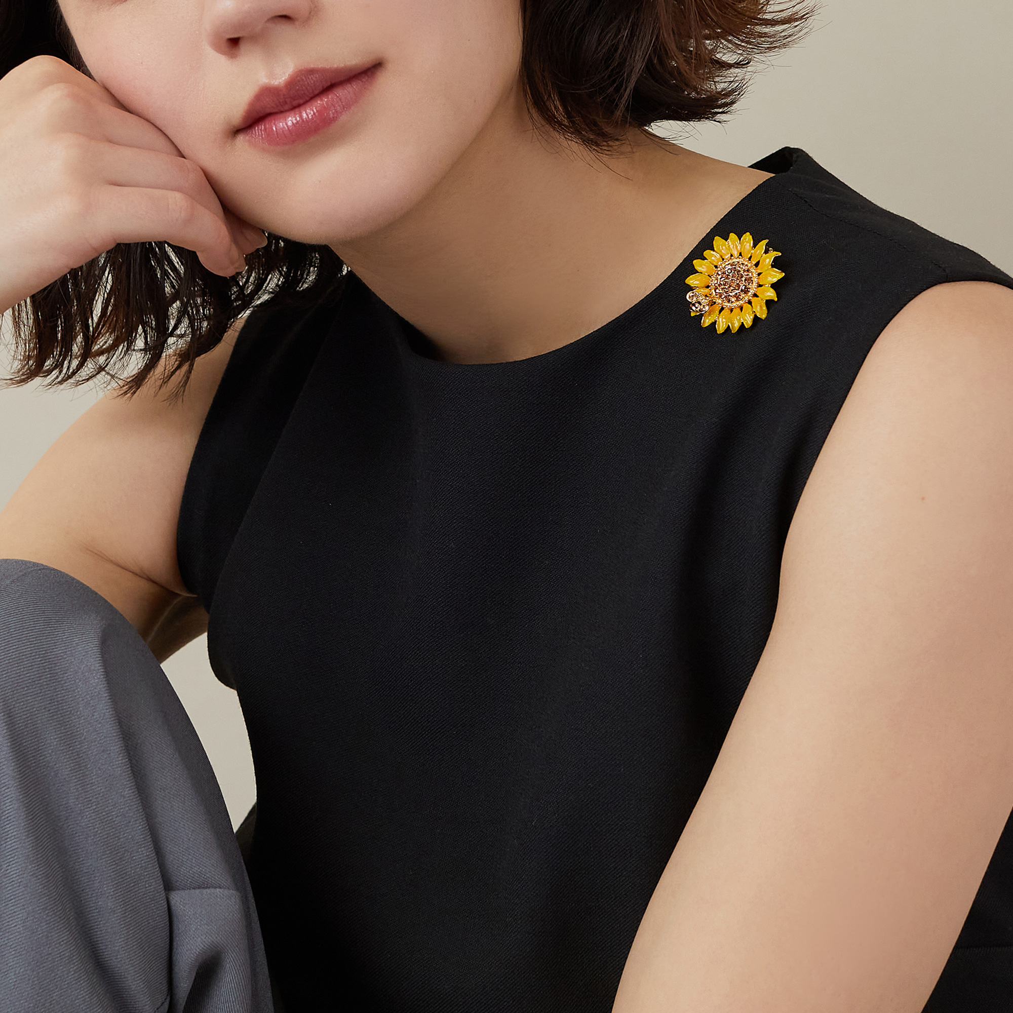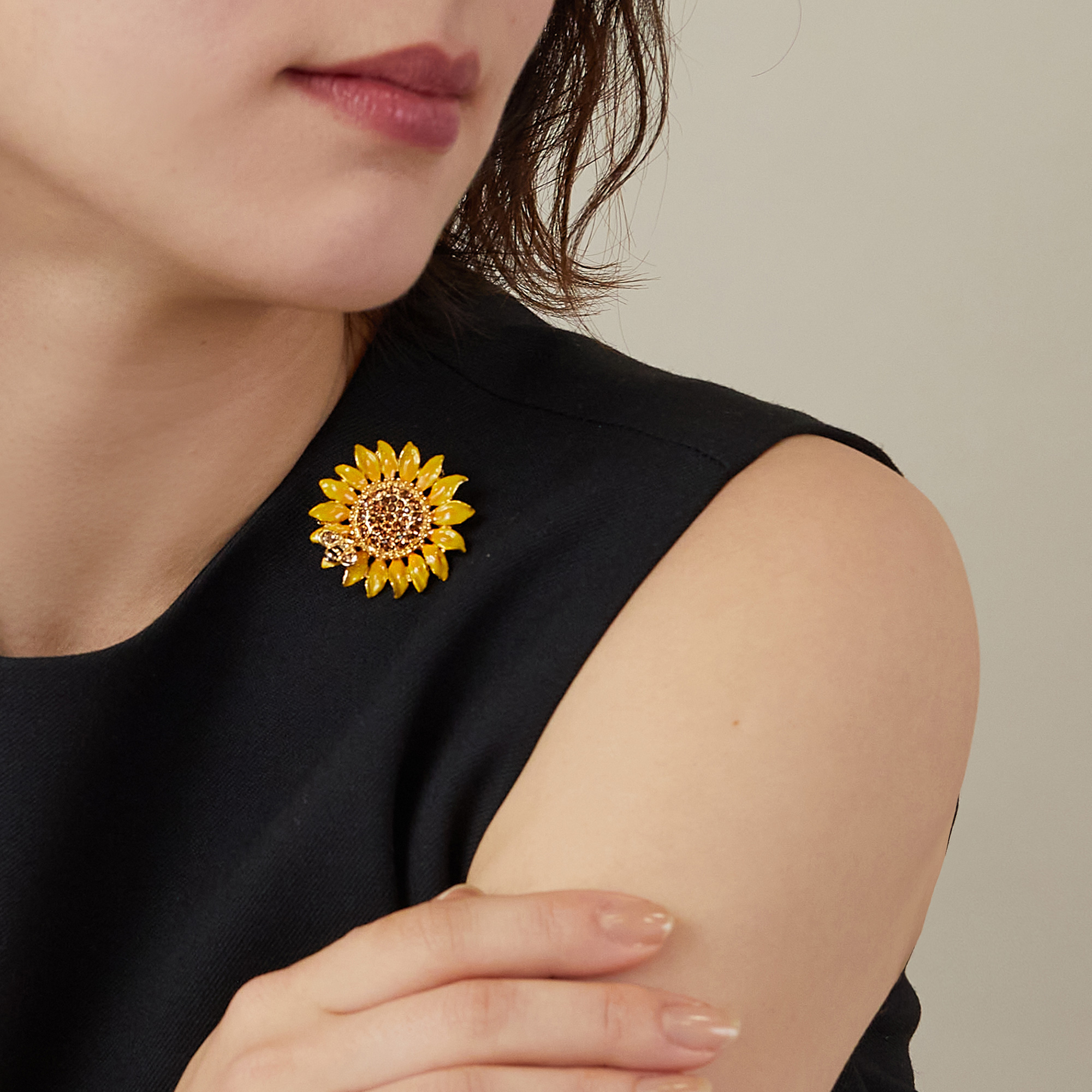 心華やぐイエローカラーが印象的なひまわりのブローチ。