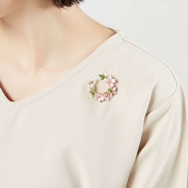 日本画のような繊細で柔らかなカラーが美しい桜のブローチ。