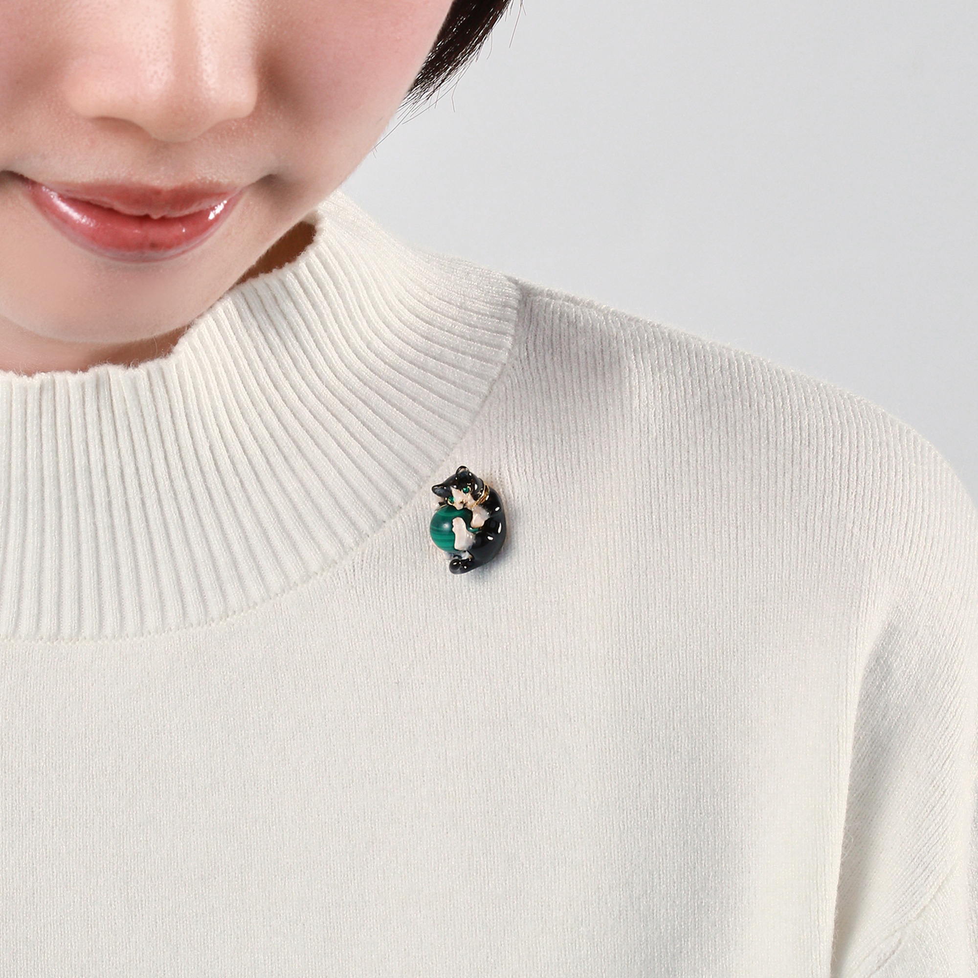 ドイツ・シュニール織のブランド「FEILER(フェイラー)」とのコラボレーションアイテム。猫たちが気ままに毛糸玉とじゃれている姿をデザインしたヴァンドームブティックオリジナルのフェイラー製ハンカチと、オリジナリティー溢れるアクセサリーとのスペシャルなセットです。おでこの「八の字」のような色分け模様がおしゃれなハチワレ猫は、漢字の「八」から末広がりと言われ、縁起の良い「福猫」とされます。熟練した職人によって一つ一つ手作業で描かれたモノトーンの柄に、ボールに見立てたマラカイトのグリーンが映えます。マラカイトは魔除けの石としても有名。大切な方へのギフトにもぴったりです。 ▼ FEILER Collection <LOVELY DOGS Vol.01> はこちらhttps://vendome.jp/vendome_boutique/feature/boutique_feiler2 ▼ FEILER Collection <LOVELY DOGS Vol.02> はこちらhttps://vendome.jp/vendome_boutique/feature/boutique_feiler3 ▼ FEILER Collection <PLAYING CATS> はこちらhttps://vendome.jp/vendome_boutique/feature/boutique_feiler