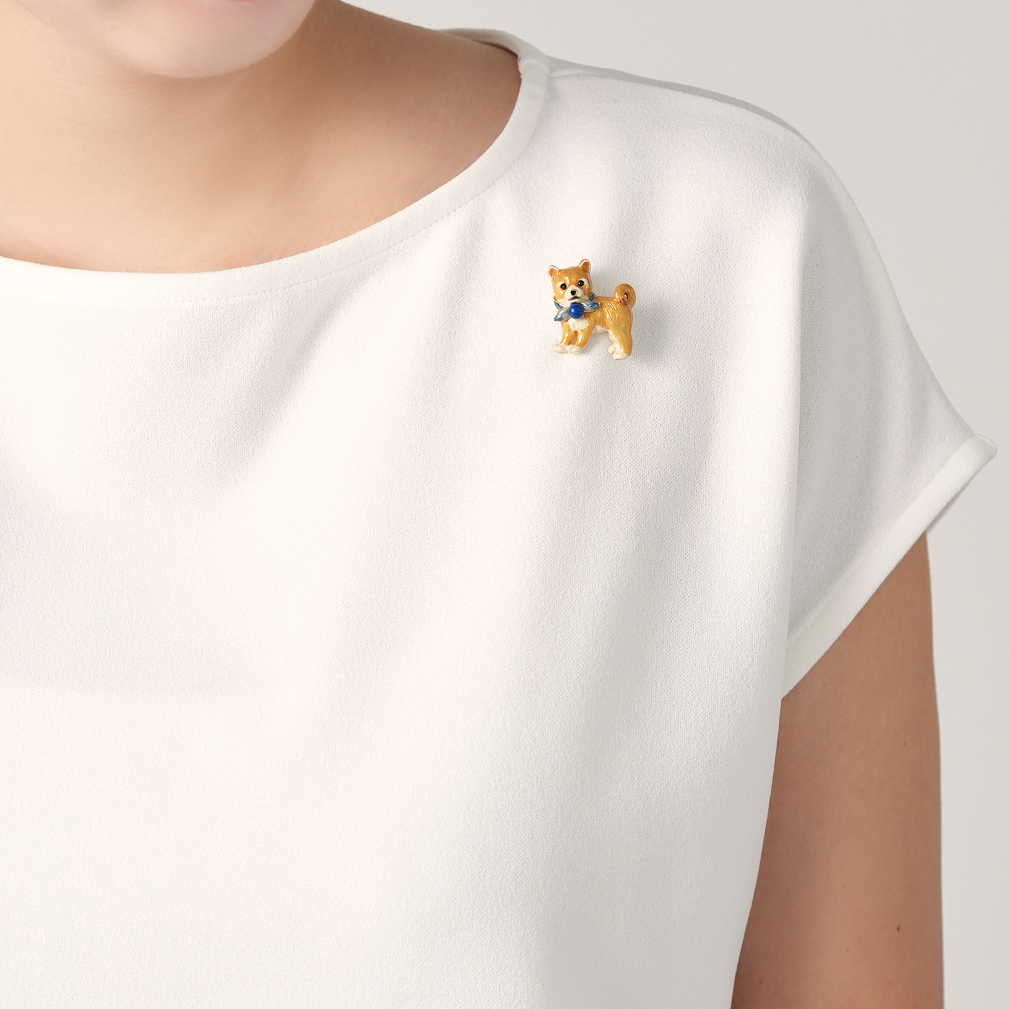 ドイツ・シュニール織のブランド「FEILER(フェイラー)」とのコラボレーションアイテム。様々な種類の犬たちを愛らしく描いたヴァンドームブティックオリジナルのフェイラー製ポーチと、オリジナリティー溢れるアクセサリーとのスペシャルなセットです。今にも走り寄っててきそうな、愛らしい表情の柴犬をそのままブローチに。熟練の職人によって1つ1つ手作業で描かれた柔らかなブラウンカラーに、繊細なブルーグラデーションカラーの優しい配色は見ているだけで心癒されます。忠誠心溢れるつぶらな瞳に、くるりと巻いた尻尾までディティールにこだわり、柴犬の可愛さを堪能できるブローチです。胸元には凛としたブルーが美しいラピスラズリをあしらいました。「幸運をもたらす」石とも言われ、大切な方へのギフトにもぴったりです。 ▼ FEILER Collection <LOVELY DOGS Vol.01> はこちらhttps://vendome.jp/vendome_boutique/feature/boutique_feiler2 ▼ FEILER Collection <LOVELY DOGS Vol.02> はこちらhttps://vendome.jp/vendome_boutique/feature/boutique_feiler3 ▼ FEILER Collection <PLAYING CATS> はこちらhttps://vendome.jp/vendome_boutique/feature/boutique_feiler