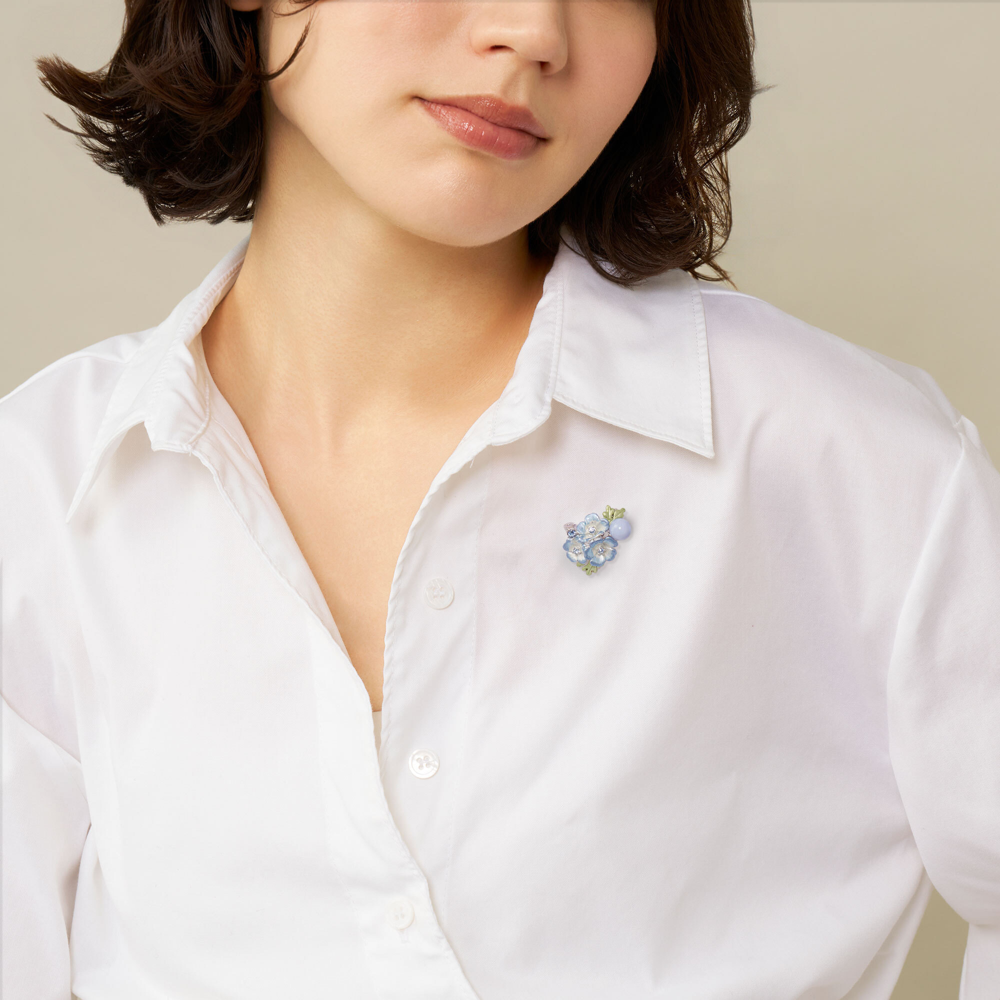一面に広がる青い絨毯のように群生する、美しいネモフィラ畑の一部を切り取りブローチに仕立てました。