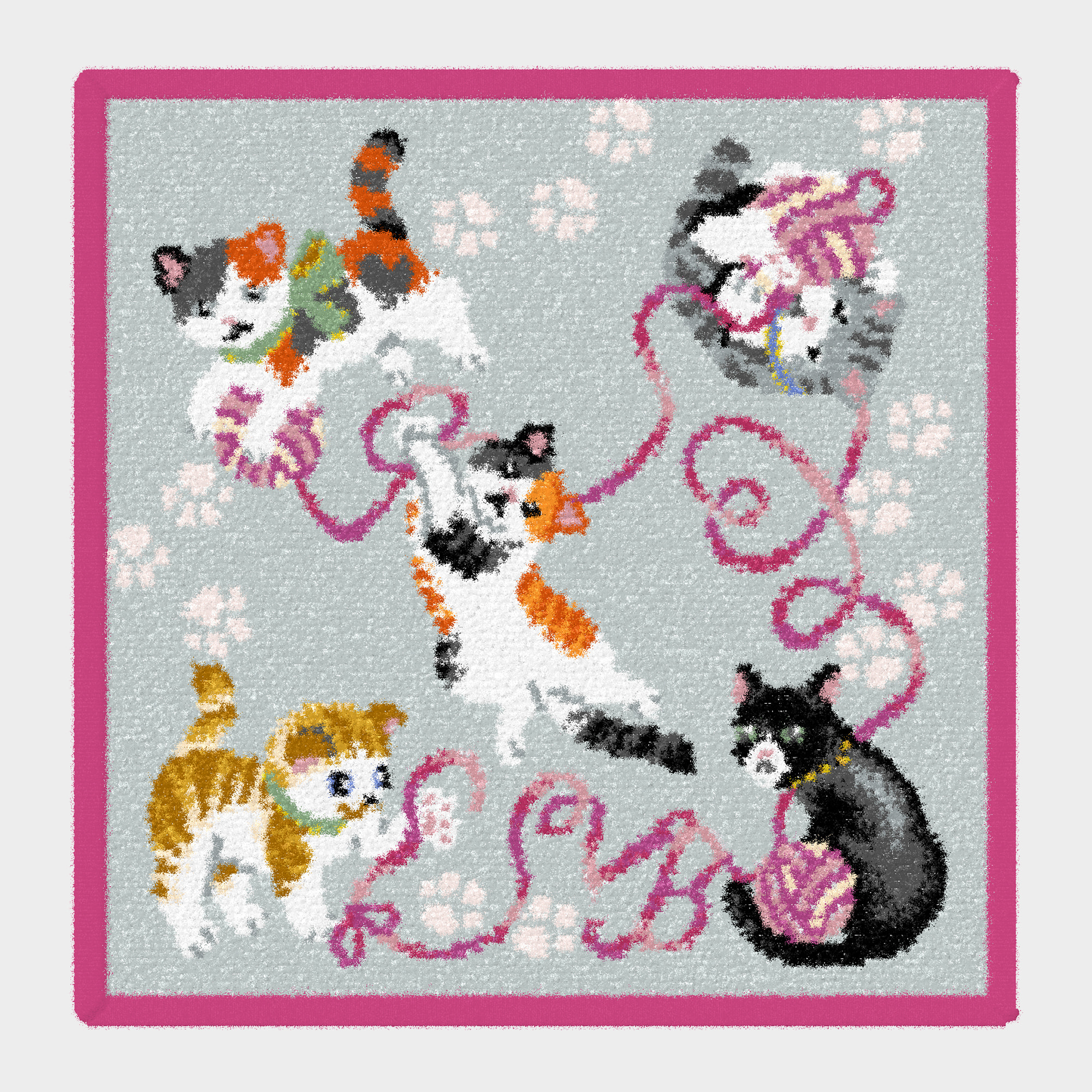 ドイツ・シュニール織のブランド「FEILER(フェイラー)」とヴァンドームブティックがコラボレーションしたハンカチ。猫たちが気ままに毛糸玉とじゃれている姿をデザインしたヴァンドームブティックオリジナルの柄です。柔らかなグレーカラーに、鮮やかなマゼンタピンクの効かせカラーが持っているだけでハッピーな気分になりそう。様々な毛色の猫たちが残すベビーピンクの足跡も愛らしいアクセントに。毛糸玉で遊んだり、座ってくつろいでみたり。思い思いに過ごす気ままな猫たちのキュートな魅力がぎゅっとつまったハンカチです。※公式オンラインストア限定商品です。 ▼ FEILER Collection <LOVELY DOGS Vol.01> はこちらhttps://vendome.jp/vendome_boutique/feature/boutique_feiler2 ▼ FEILER Collection <LOVELY DOGS Vol.02> はこちらhttps://vendome.jp/vendome_boutique/feature/boutique_feiler3 ▼ FEILER Collection <PLAYING CATS> はこちらhttps://vendome.jp/vendome_boutique/feature/boutique_feiler