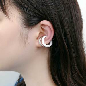 ホワイトカラーの模造石とシルバーのイヤーカフ2点セット。