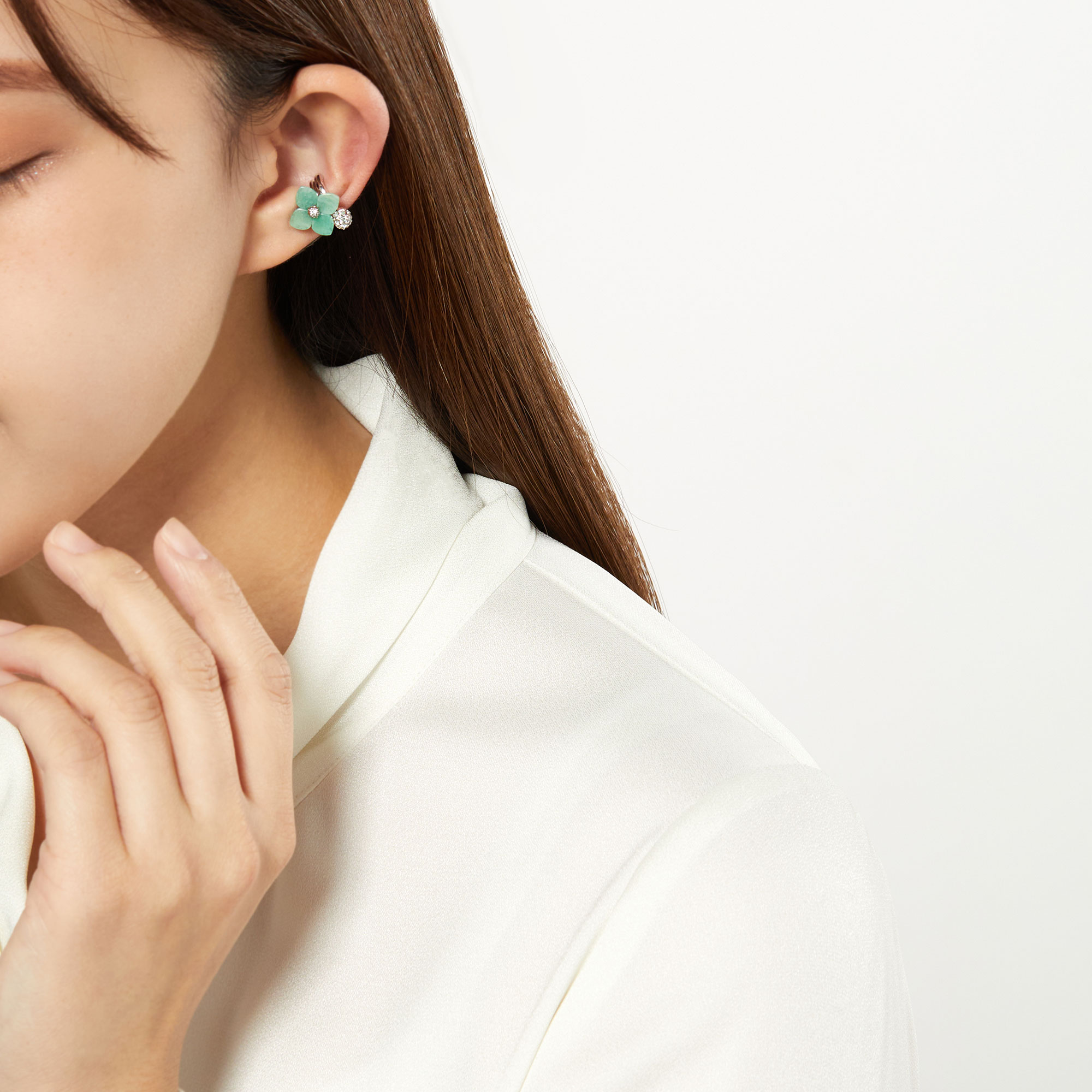 「フルール・ド・ヴァンドーム」コレクションより、50周年記念モデルとして天然石アマゾナイトを使ったラグジュアリーなイヤーカフが登場。
